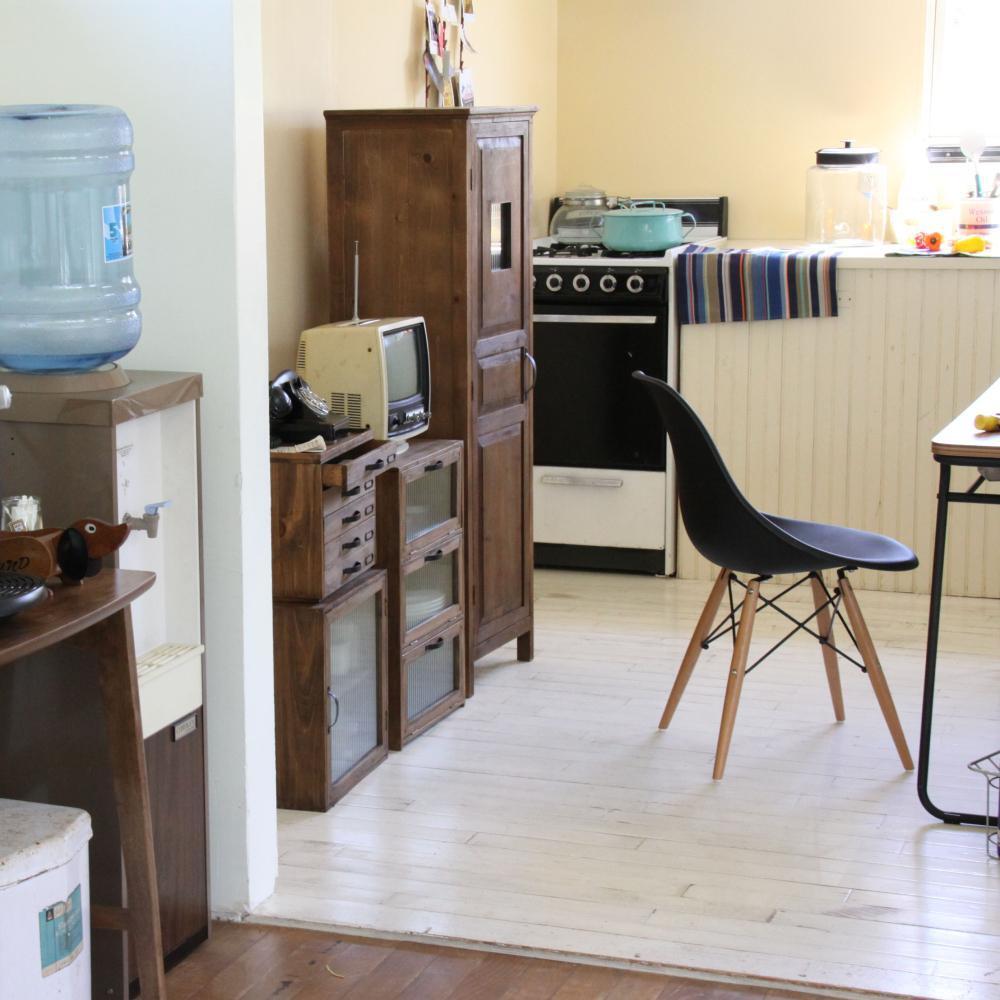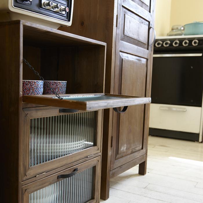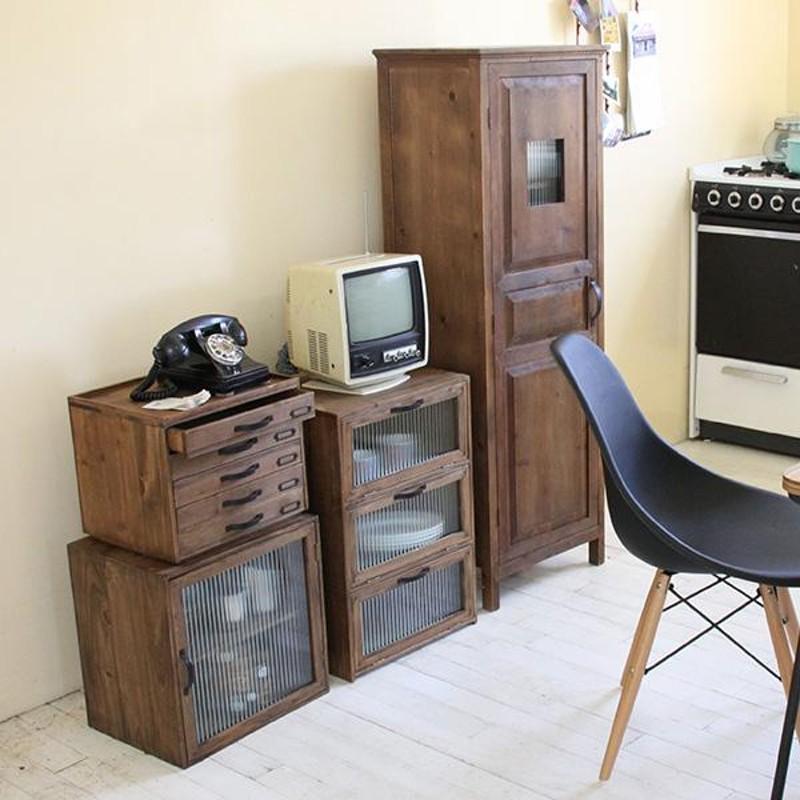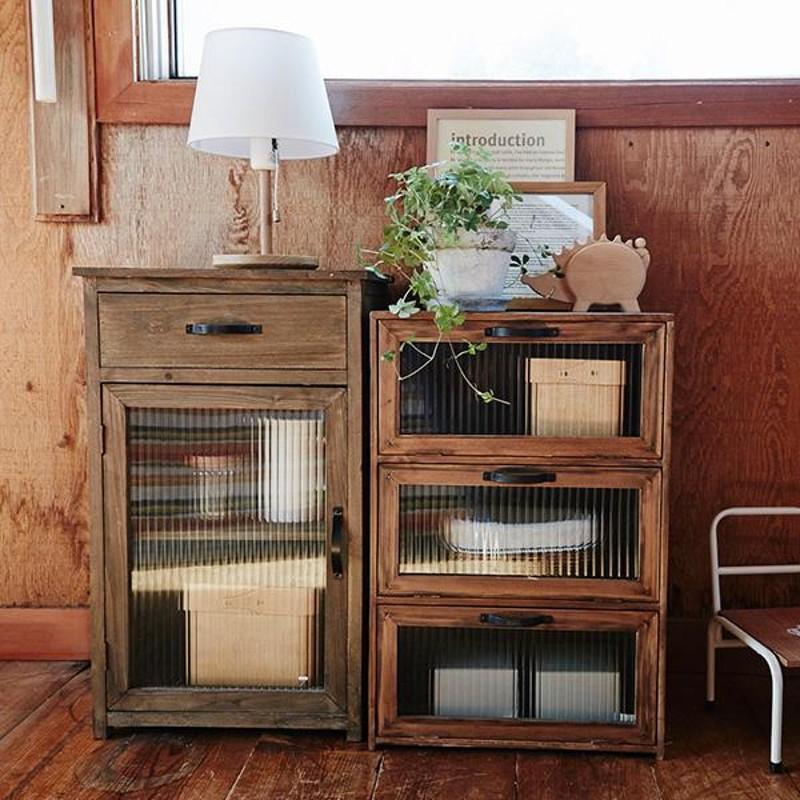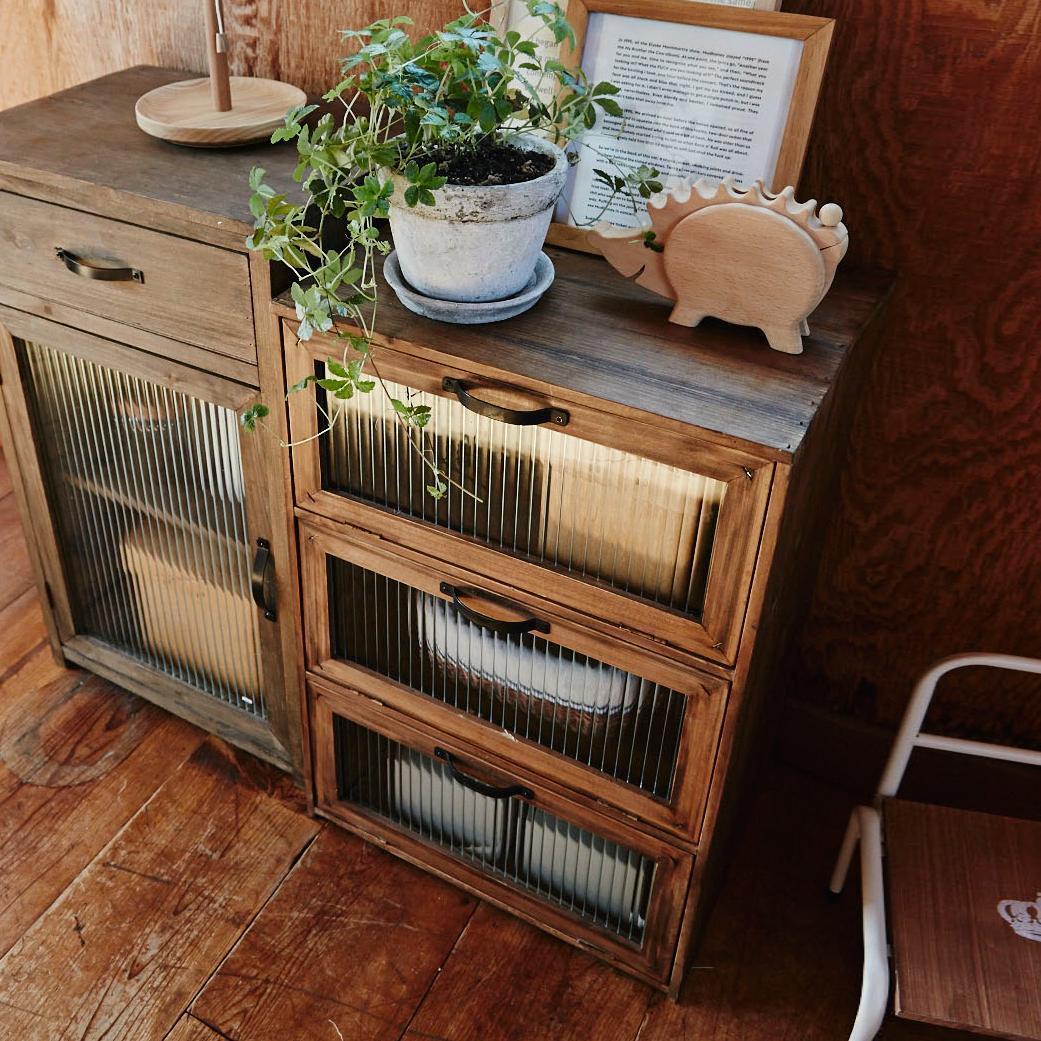天然木の杉の美しい木肌が味わい深いキャビネット。 杉古材のところどころ巻き込むように渦巻く模様の木目は、どこか古い建築物を思わせ、落ち着いた印象深い木材となります。 ガラスにはアンティーク感のある波紋ガラスを使用しております。 光を十分に通しつつも、まるでモザイクのように景色を滲ましてくれる美しいガラスをお楽しみ頂けます。 またレトロなアイアンの取っ手など、少し無骨で、ヴィンテージ家具のデザインがナチュラルな空気感を演出致します。 置くだけで絵になるデザイン性の高い設計ですので、お気に入りのインテリアや食器、小物、観葉植物を飾って、自分なりの空間作りを演出いただけます。 [杉材について] ・スギの肌触りは柔らかで温かみのが特徴的です。 ・さわやかな香りを持ち、森林浴をしているような気分になれ、リラックス効果を生み出してくれ、抗菌や防虫作用の効果もあります。 ・スギは経年変化することで木目が濃くなり、独特の重厚感が出てくる為、生活とともに歴史を刻んでいる様子がわかりやすく、愛着も湧きやすくなるのも魅力です。 ・またスギは心材と辺材の色味の違いがはっきりしていることから、さまざまなイメージのお部屋が作れる点も魅力の1つです。 木材は天然木ですので、経年変化で色調が変化していき、日々の暮らしのなかで生じる傷みすらも味になる、個性的な木材となります。 [ラッカー塗装について] 素朴な木本来の質感を残した塗装でナチュラルな仕上がりを楽しめます。 木材の表面には薄い塗膜が作られ、水や余計な油、紫外線などから守られるため汚れたり傷ついたりせず、長い間使うことができます。 木材独特のささくれも塗り方によっては防げるため、手に持って使う物の安全性の向上も得られます。 [商品について] 商品は天然木を使用しておりますので、節、経年変化での小さな傷、木目の変化などがございます。 |