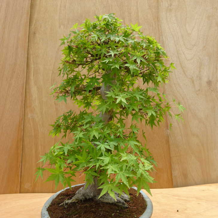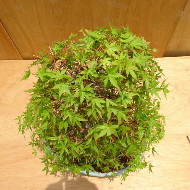 | ■植物ですので撮影時期や季節によって剪定などの手入れにより写真から変化がございます。撮影日をご確認のうえ、ご注文ください。 ■春頃~7月上旬。葉すかし、葉刈りをおこないます。目的として全体的な枝や葉の量を減らし風通しを良くし、幹にしっかりと日光を当てるため。 【紅葉盆栽】 春先に芽吹き、夏頃には新緑、秋頃には紅葉、冬は寒樹姿と四季を通して楽しめる植物です。 もみじには、葉色、葉形、樹形、春先から真紅や紫紅色の芽を吹くもの、秋の紅葉で黄色に染まるものや斑入り葉、獅子葉、細葉、枝垂れ性など非常に多くの種類があります。 |