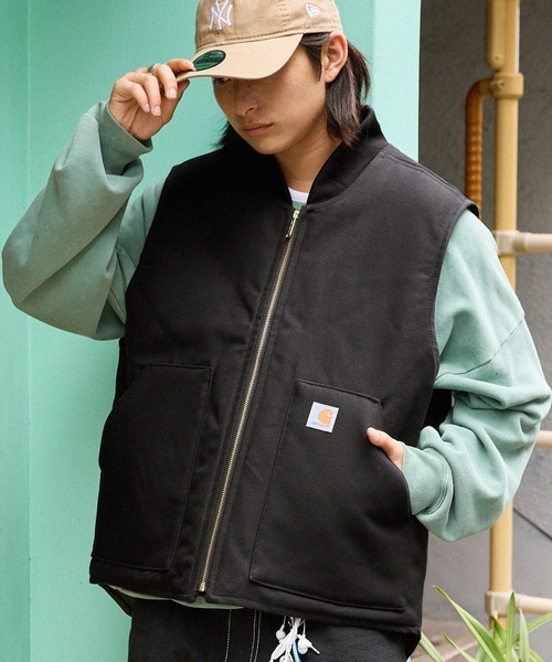 参考商品名:carhartt/カーハート Duck Insulates Rib Collar Vest ロゴ リブカラー ダッグベスト/中綿キルティング
