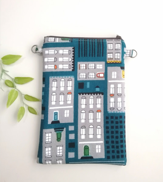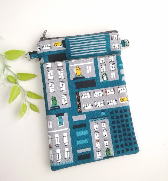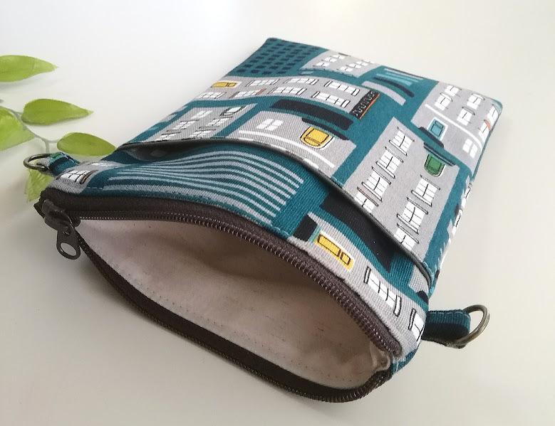 ハンドメイド 〈スマホポシェット用〉ポーチ ビルディング/建物柄〈13×19.5〉※外ポケット1コ/ショルダー紐は付属しません