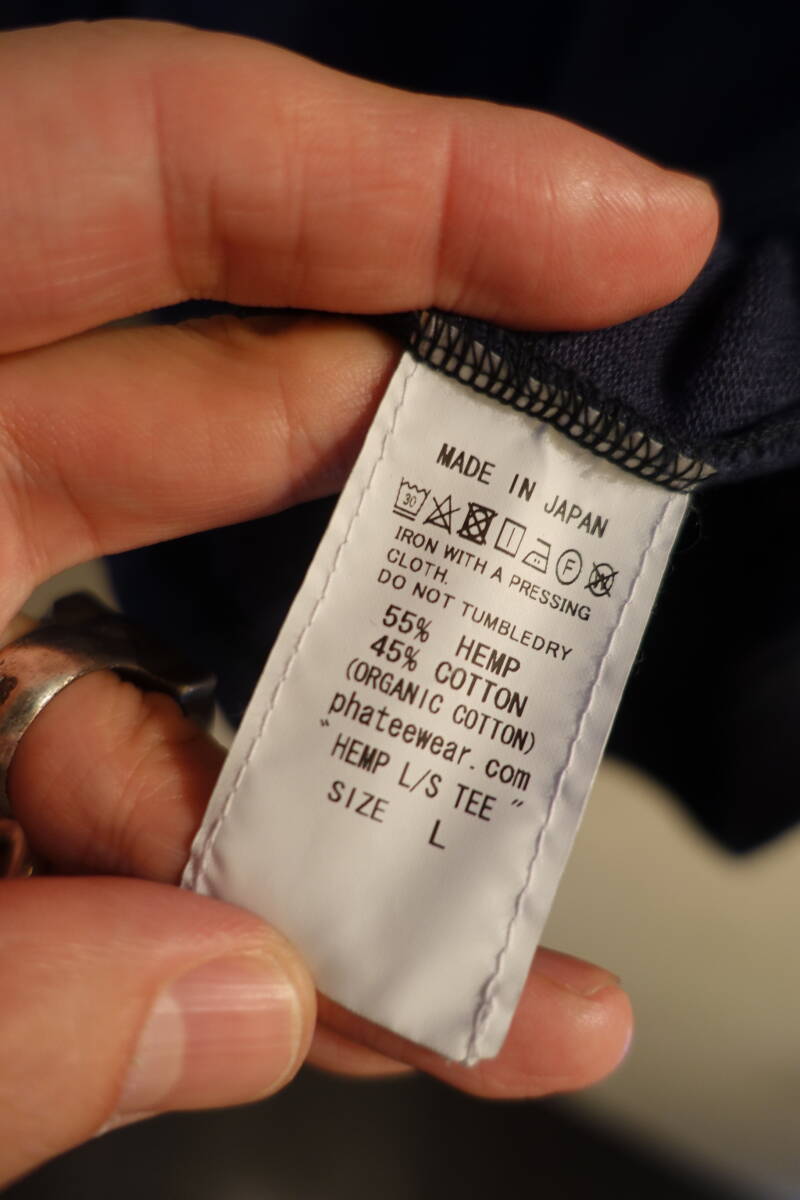 phatee ヘンプ カットソー ロングTシャツ ロンT 55%ヘンプ HEMP L/S TEE ネイビー サイズL