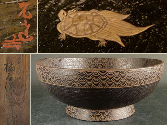 比喜多 元達 朱書 橘屋 友七 青海波 亀蒔絵 菓子器 庸軒流