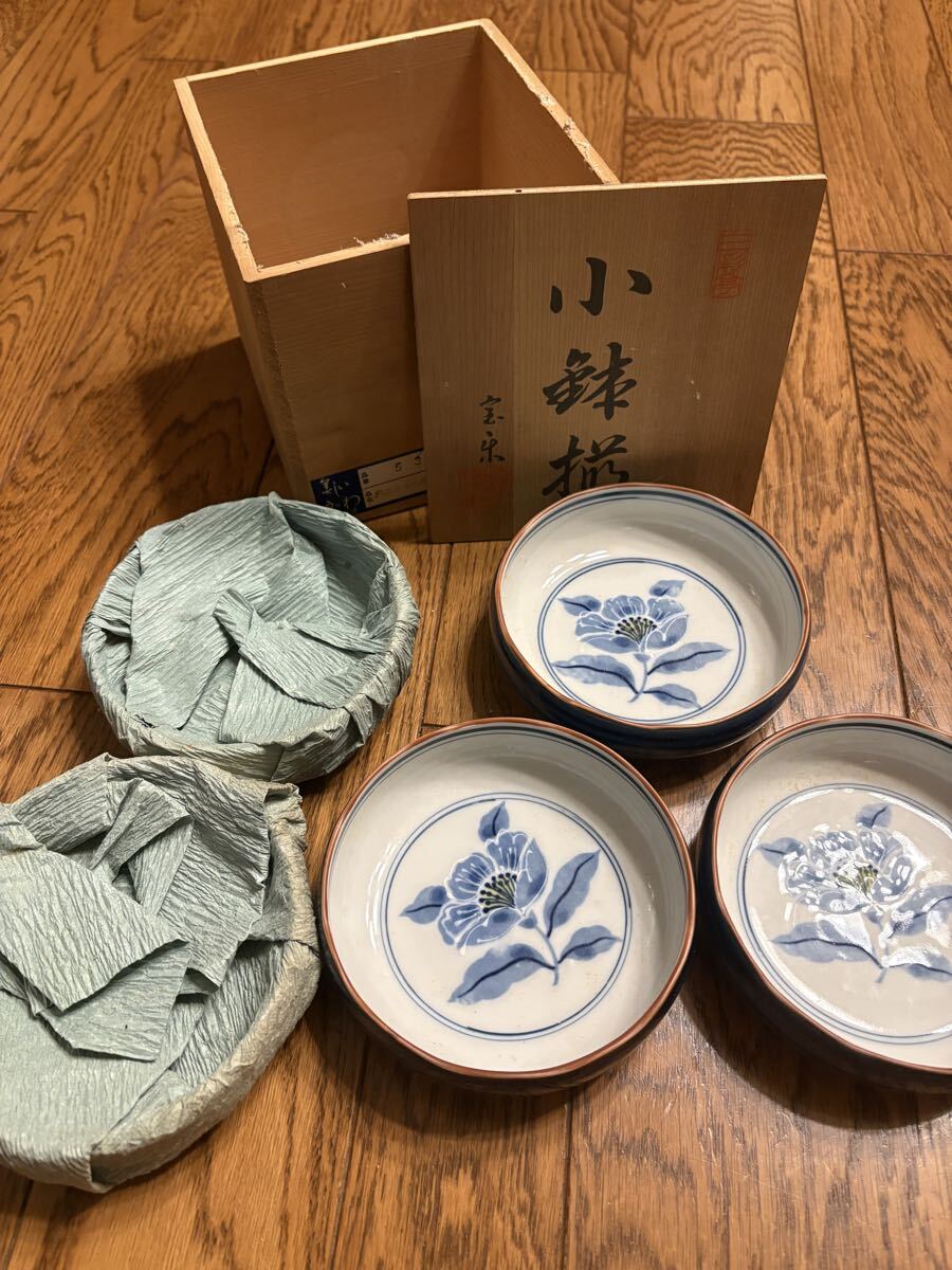 30年以上前の頂き物で、未使用のまま、長期保存。直径12.5cm、深さ約3.5cm。5脚セット。