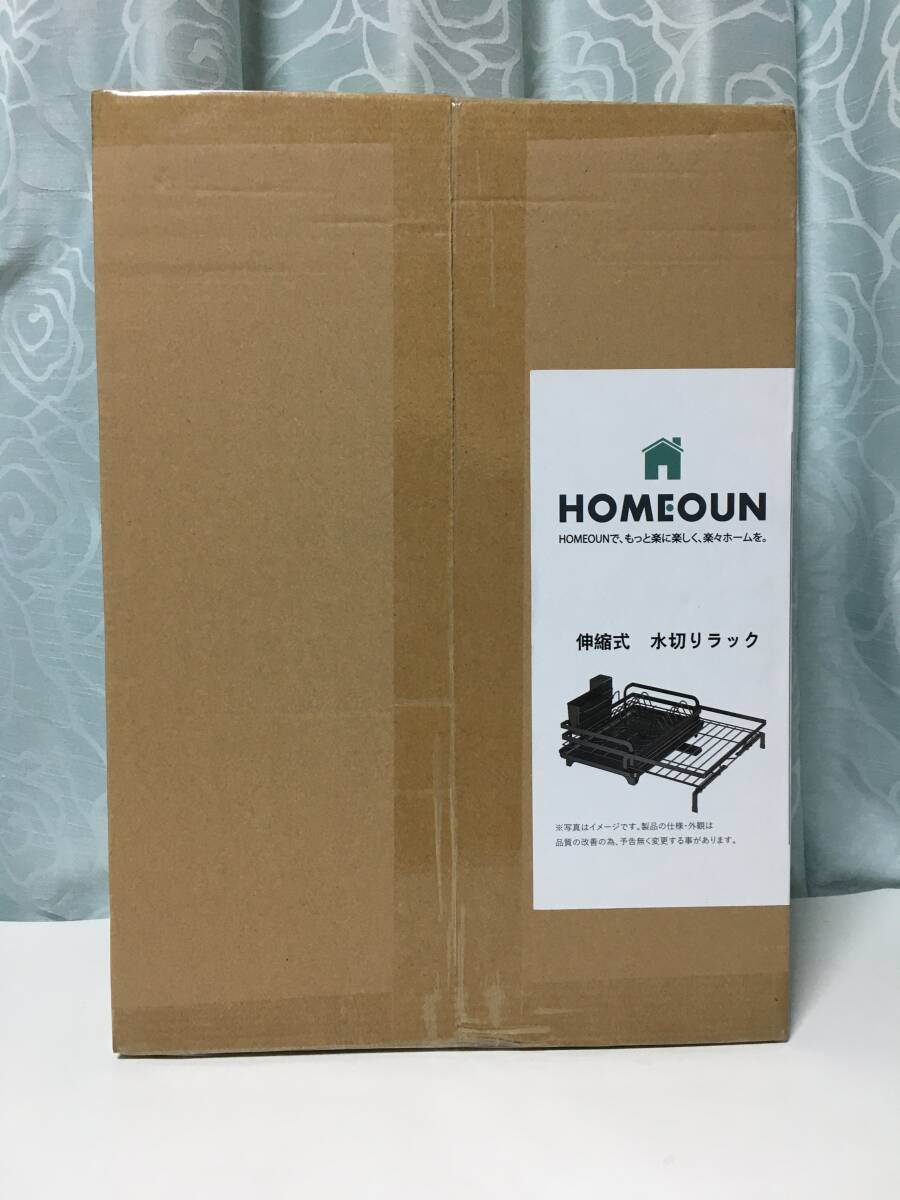 Amazon | HOMEOUN 伸縮式 水切りラック シンク上 幅3151cm調整可能 大容量 食器ラック 自動排水 360°回転排水管 防錆 コーティング 工具不要 組立簡単 キッチン収納 省スペース(ブラック)