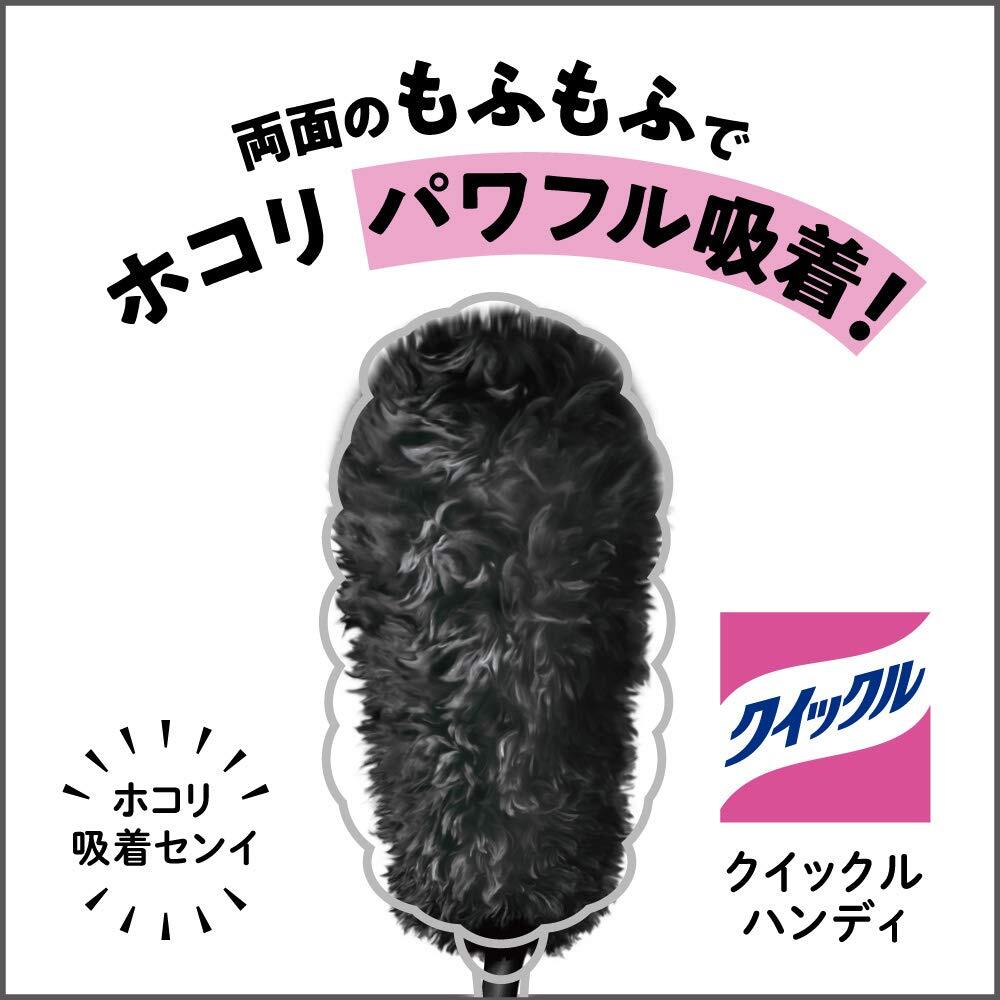 説明 ブラックカラータイプ。 両面のもふもふが、ホコリをごっそり吸い付ける! 吸着センイが凸凹・すき間の奥のホコリ・花粉・ハウスダストもからめとる! パソコンやTVまわりや本棚、小物の間、サッシの溝など、色々な場所に使えます。 クイックルハンディ・クイックルハンディ伸び縮みタイプ、どちらにも使えます。