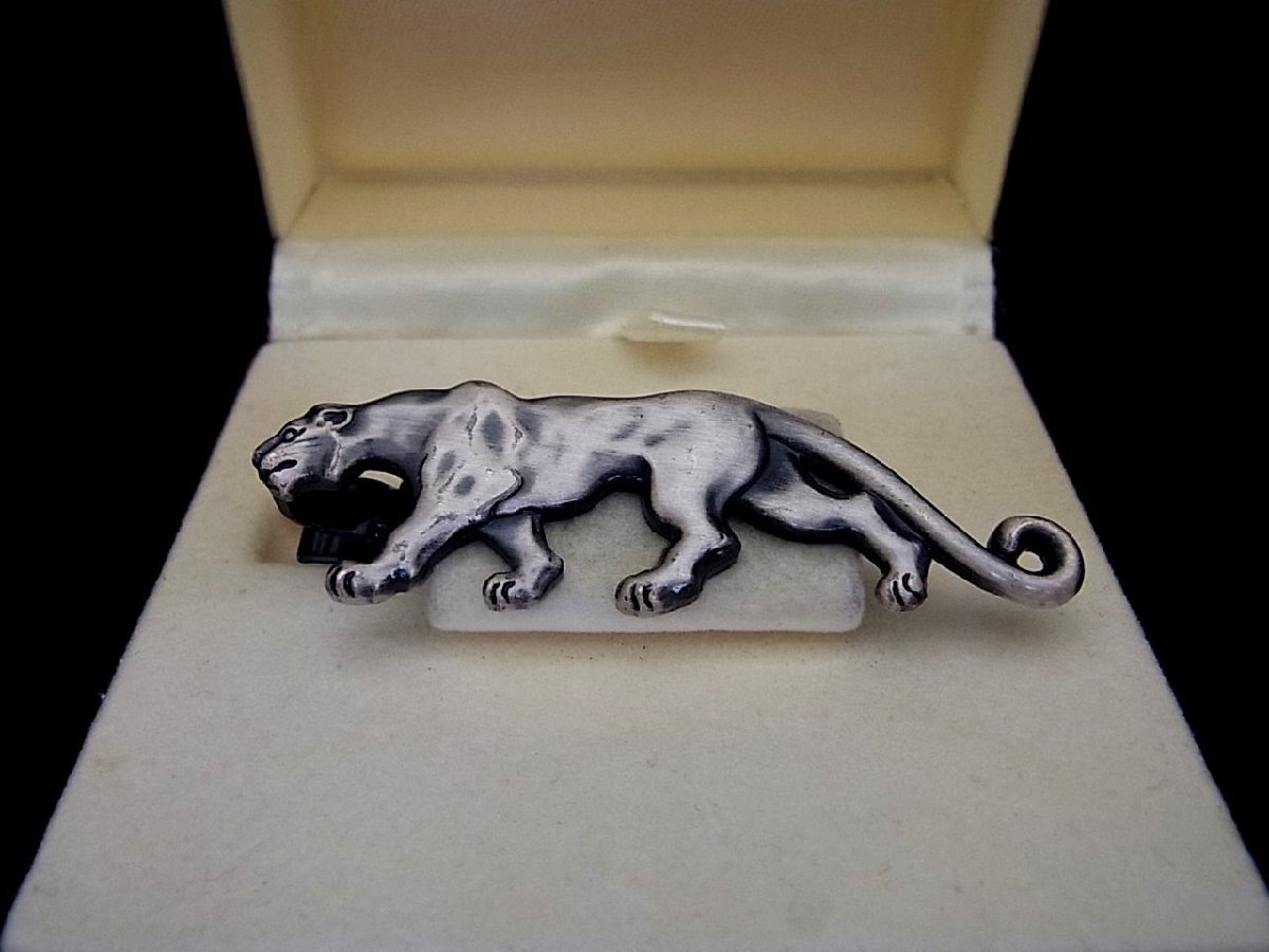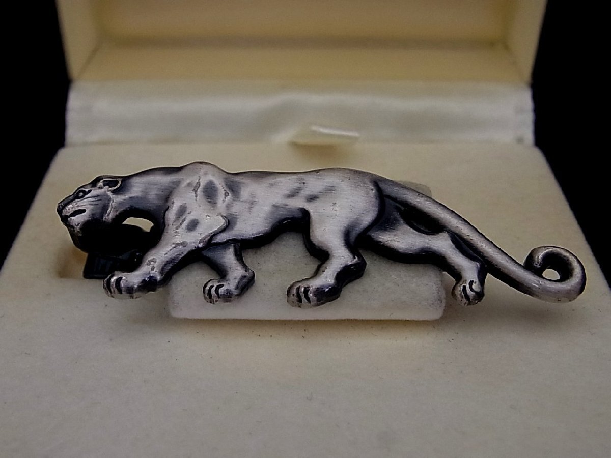 KF0668 良品【ピューマ クーガー・動物】「純銀」ネクタイピン タイピン■
