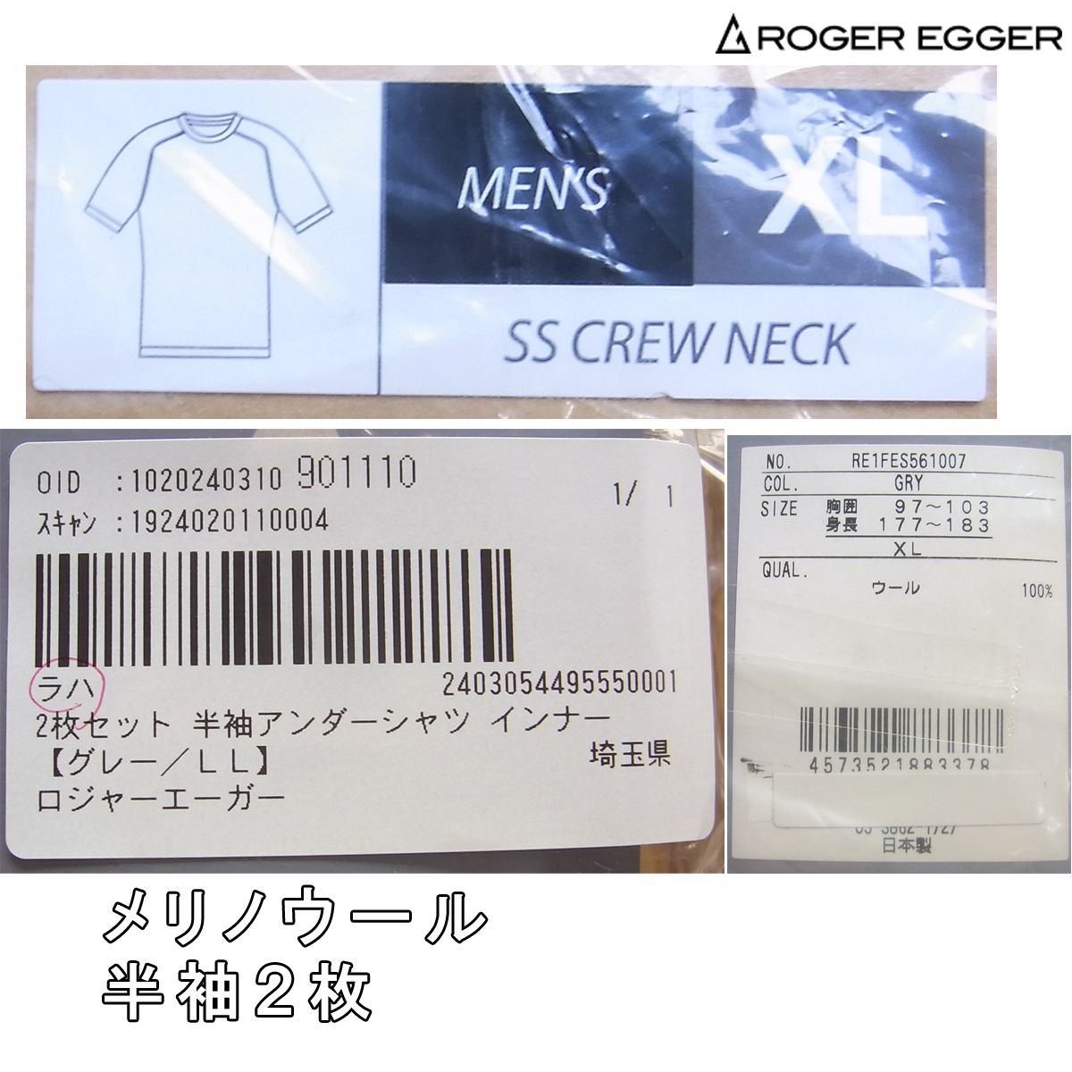 ROGER EGGER ロジャーエーガー メリノウール Merino Wool 半袖2枚 長袖1枚 セット 未使用 保管品 半額 MADE IN JAPAN