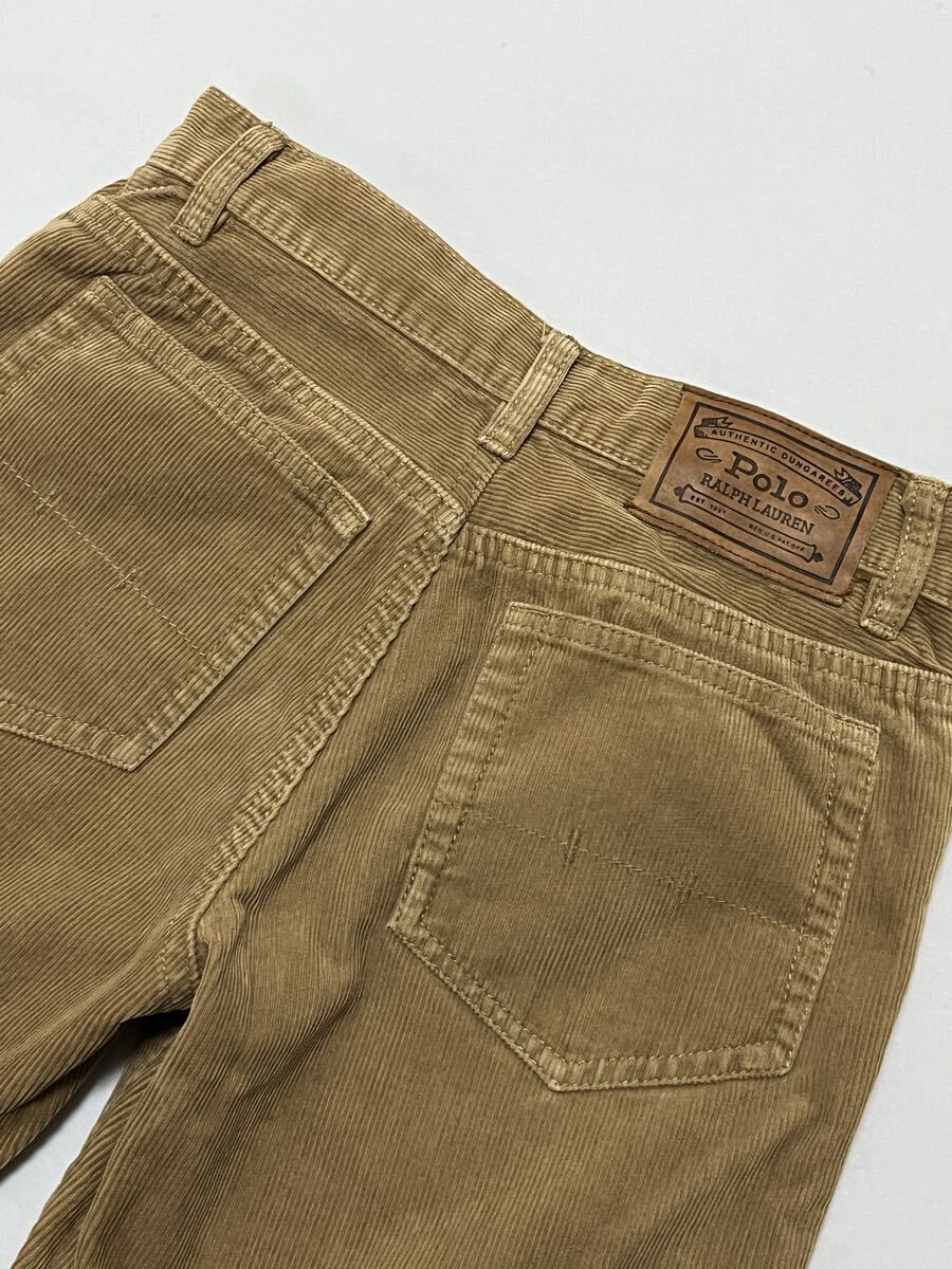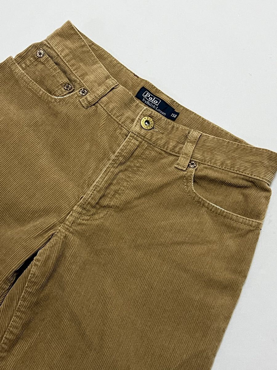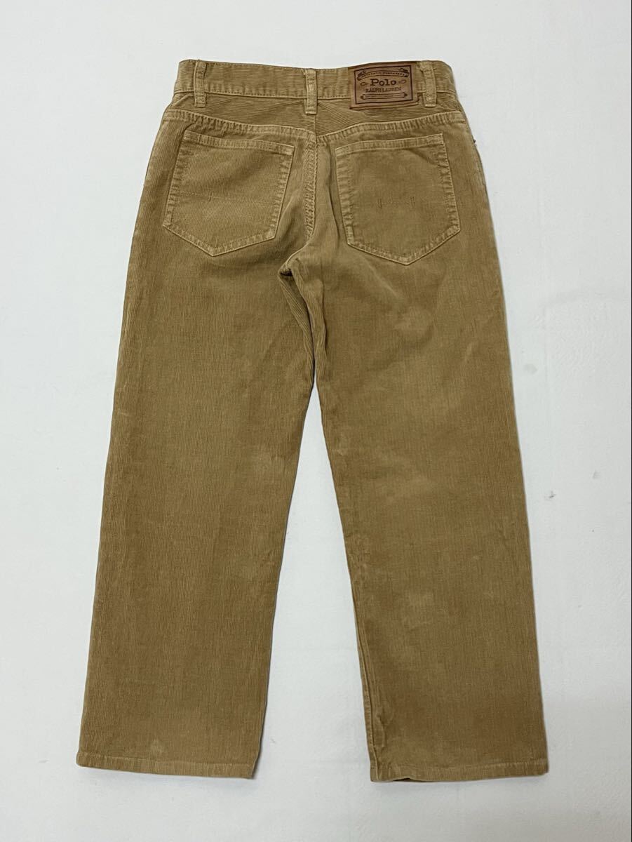 ラルフローレンの定番ストレートシルエット、コーデュロイパンツのキッズモデル。本革レザーのパッチが付いた、高級感のあるパンツです。