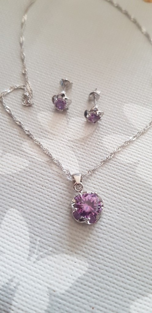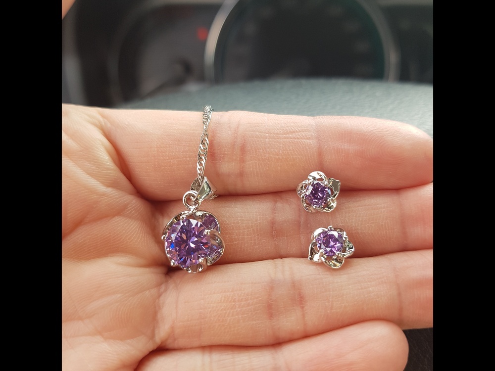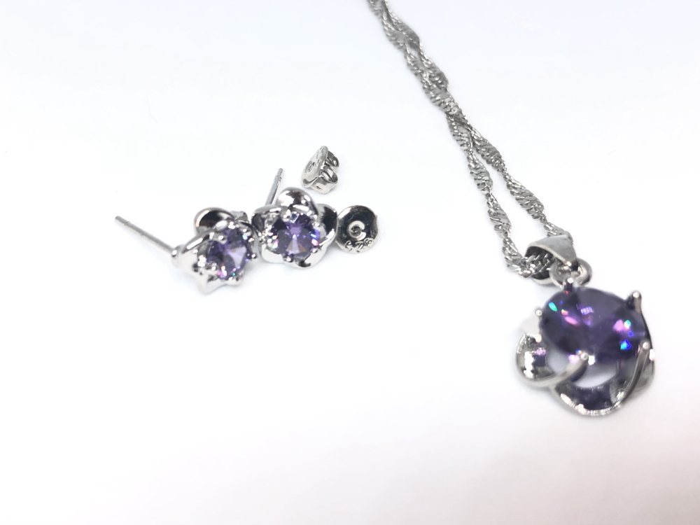 大粒czダイヤモンド★ネックレス 両耳ピアス 2点セット シルバー925紫色