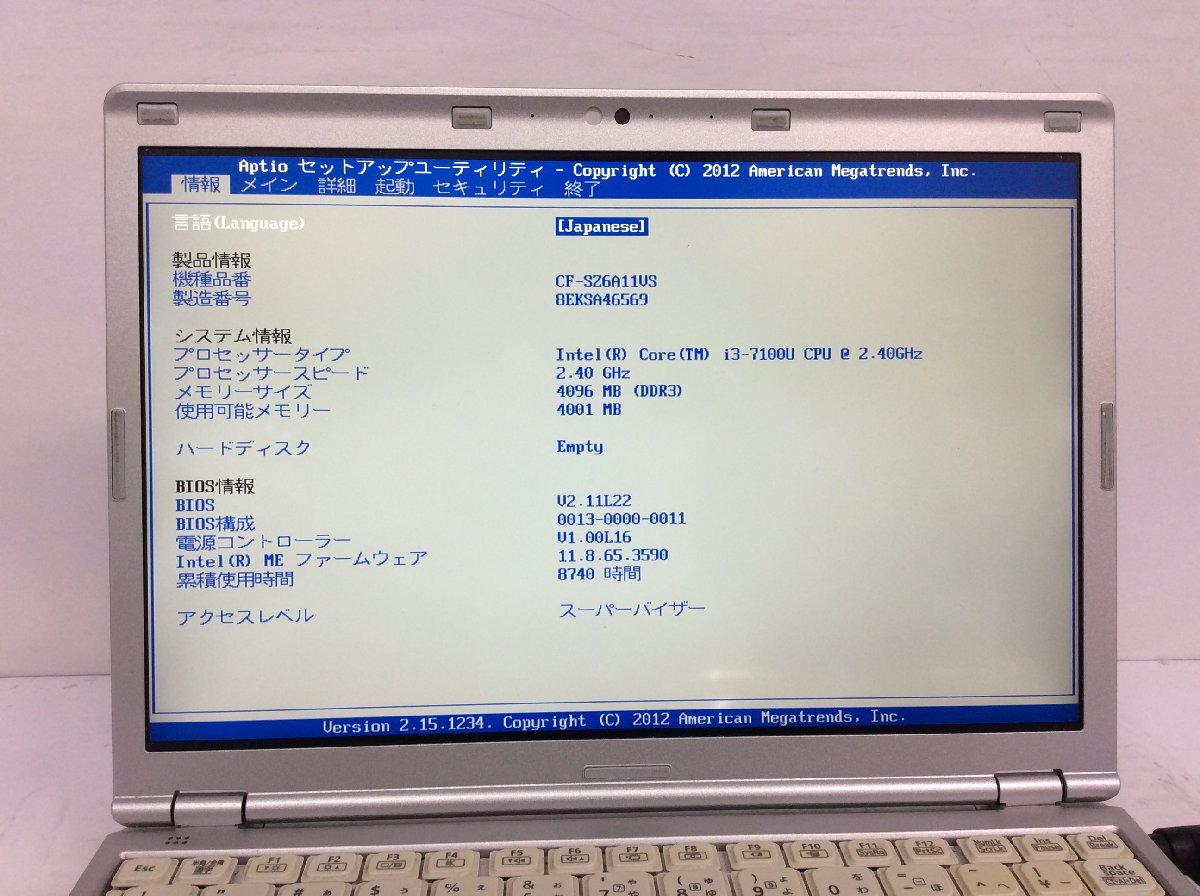 ジャンク/ Panasonic CF-SZ6A11VS Intel Core i3-7100U メモリ4.1GB ストレージ無し 【K22728】
