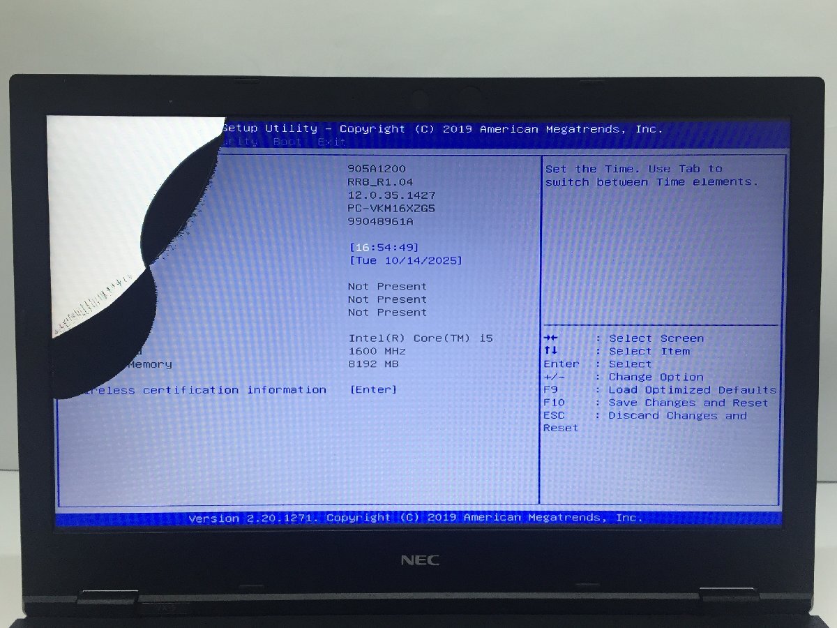 ジャンク/ NEC PC-VKM16XZG5 Intel Core i5-8365U メモリ8.19GB ストレージ無し 【K22920】