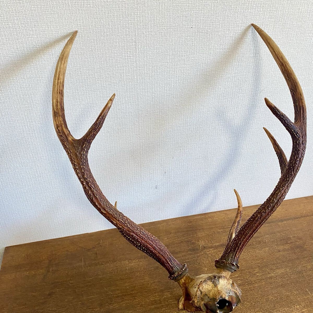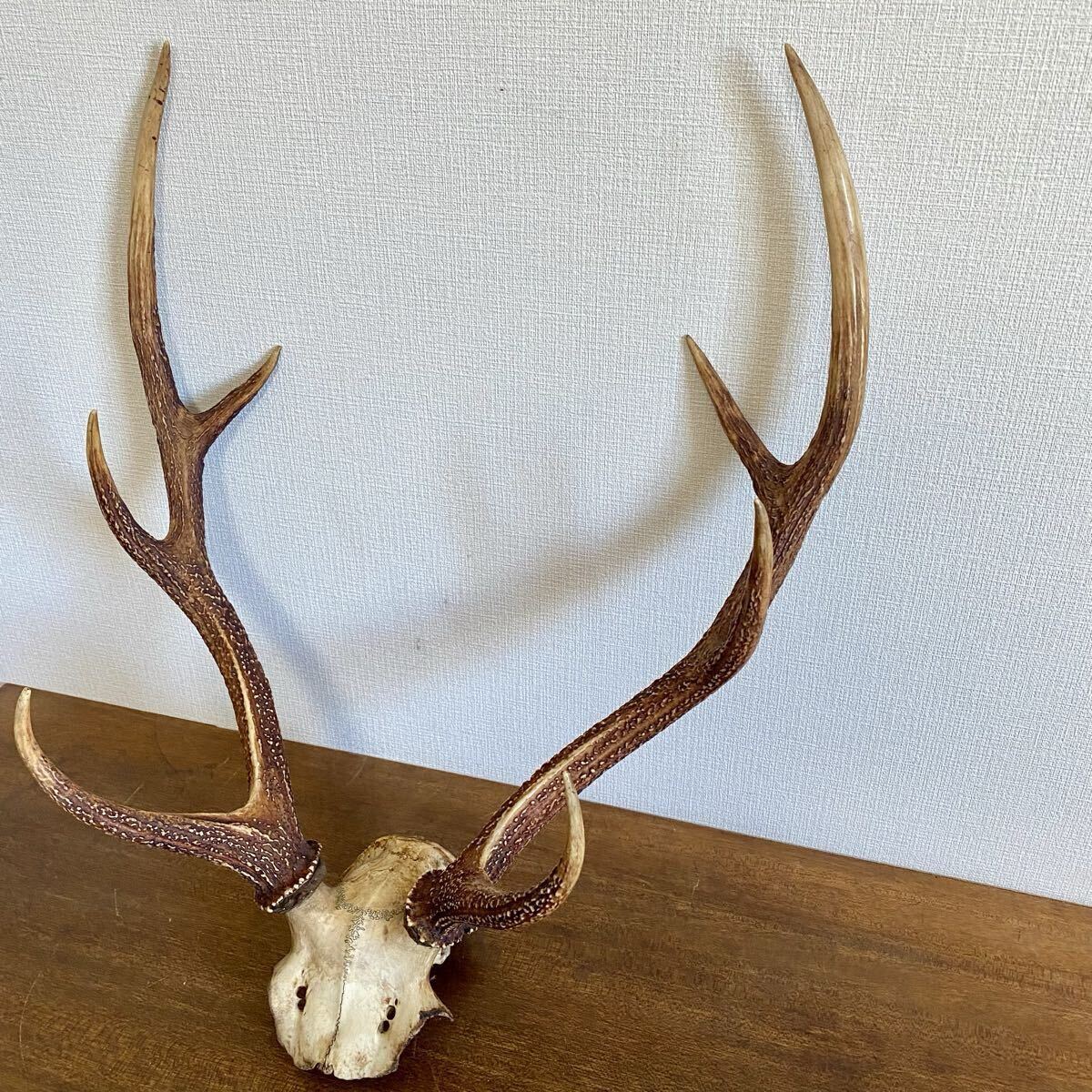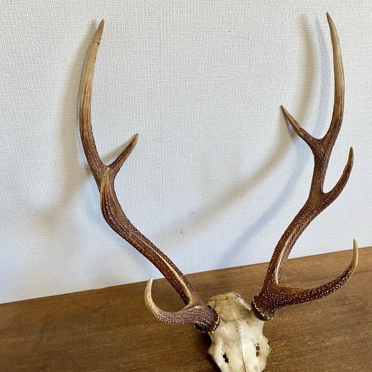 頭骨付き 鹿の角 ハンティングトロフィー オブジェです。