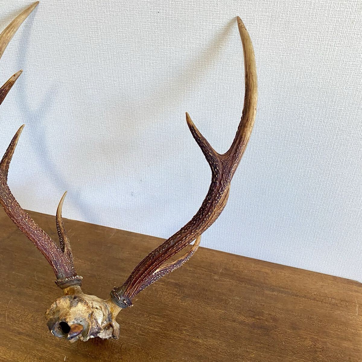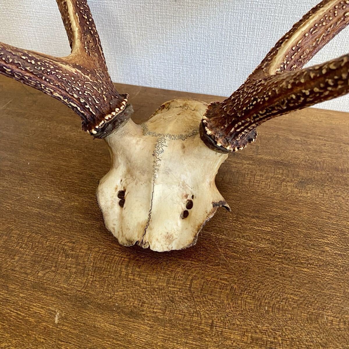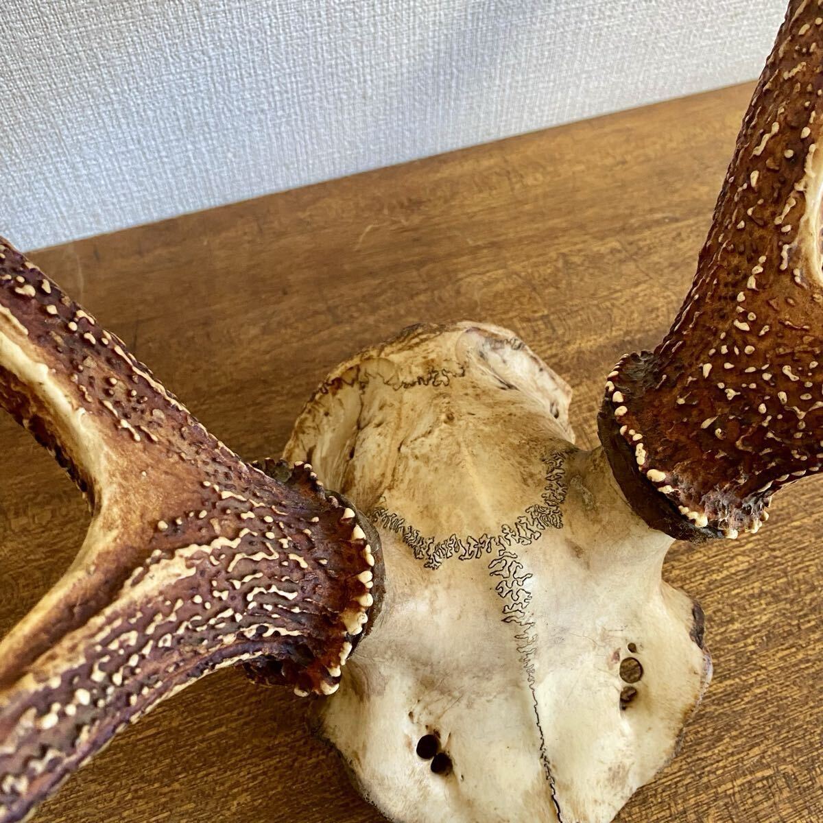 頭骨付き 鹿の角 ハンティングトロフィー オブジェです。