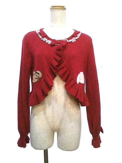新品、タグ付き! BABY the SATRS のくみゃちゃんアップリケボレロ です。うさくみゃちゃんとくまくみゃちゃんのアップリケが可愛いニットのボレロタイプ! ハートの透かし模様や衿ぐりのハート柄チュールレースもCUTEです!!お探しの方は是非!サイズは着丈:約37.5cm+フリル:約5cm、 身幅:約88cm、 袖丈:約57cm、 肩幅:約32cm。15239(60)20251015