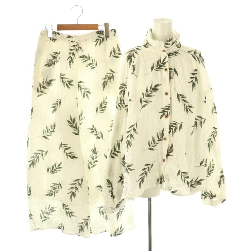 ジェラートピケ gelato pique オリーブ シャツ パンツ セットアップ パジャマ ナイトウェア F オフホワイト /DF ■OS レディース