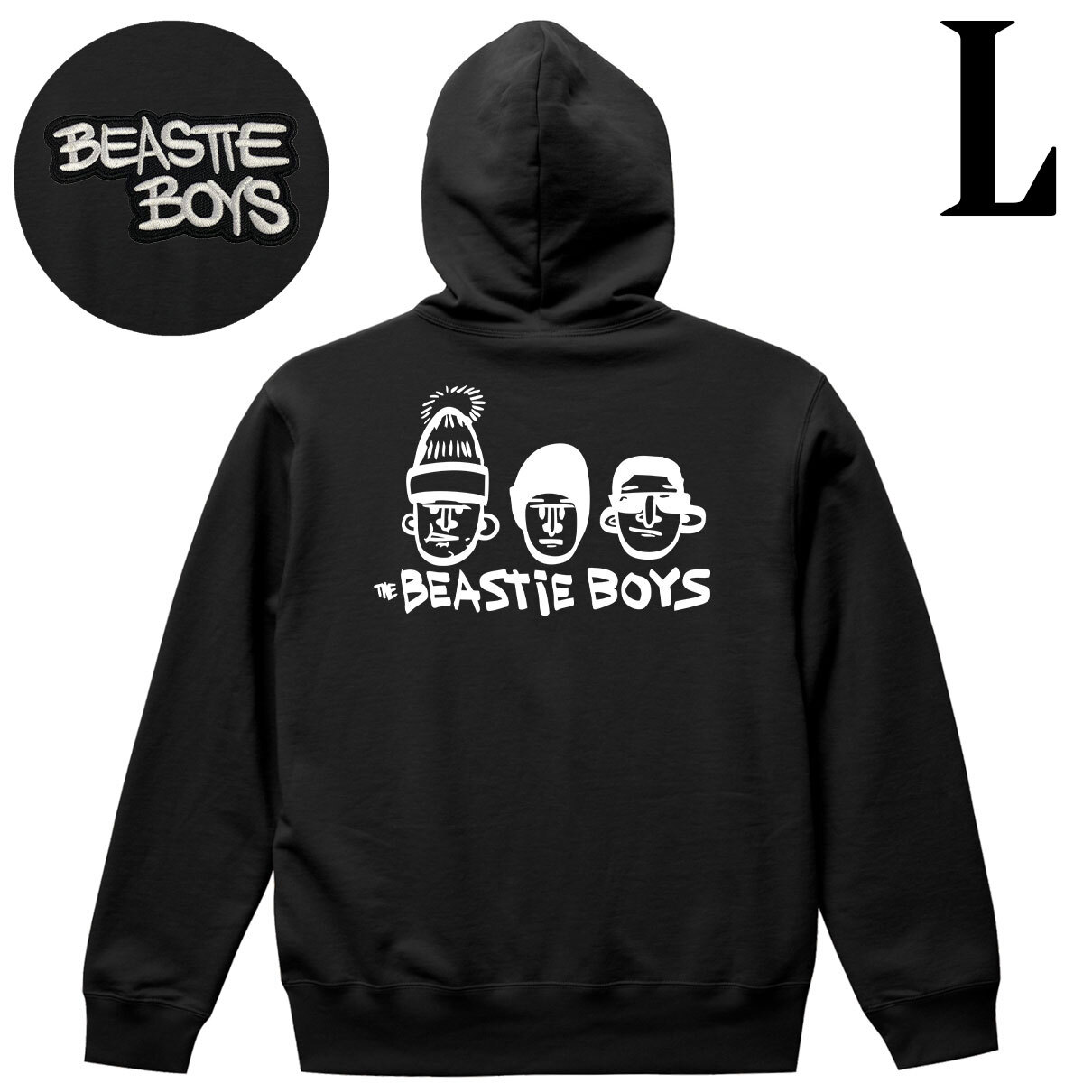 ビースティ ボーイズ Beastie Boys ロゴワッペン イラストプリント バックプリント 8.0 oz ヘビーブレンド ジップパーカー ブラック クロ L