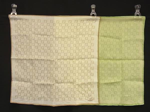 ■美品■ FENDI フェンディ ズッカ柄 ズッキーノ ハンカチ ハンカチーフ 2点セット ブラウン系×ライトグリーン系 DH5571