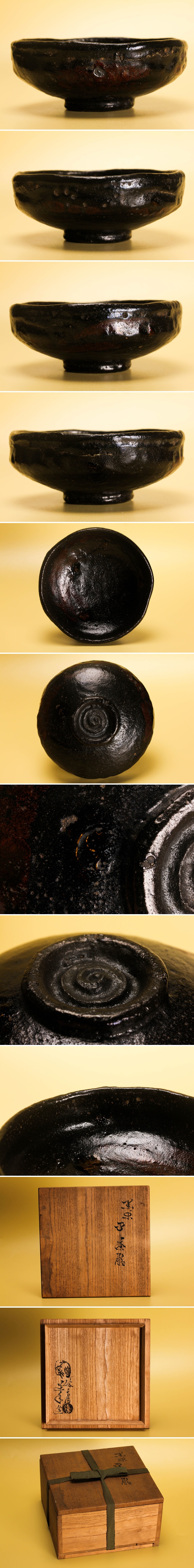初代 中村道年(一休庵) 八事窯 黒楽平茶碗 共箱 茶道具 本物保証