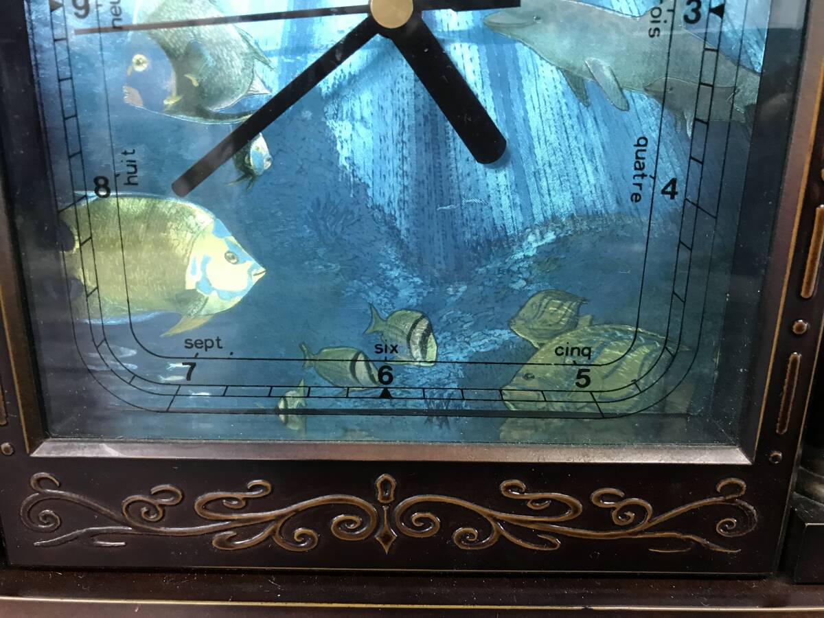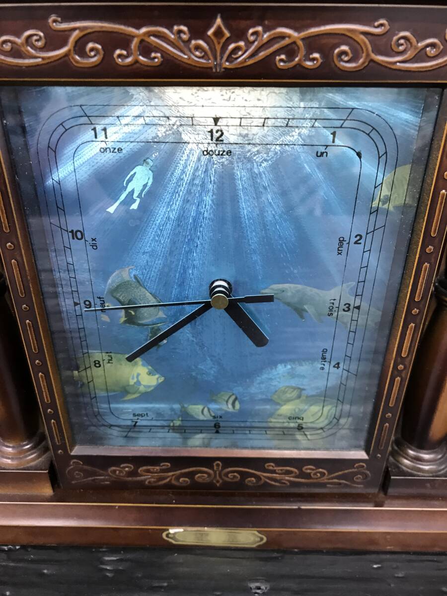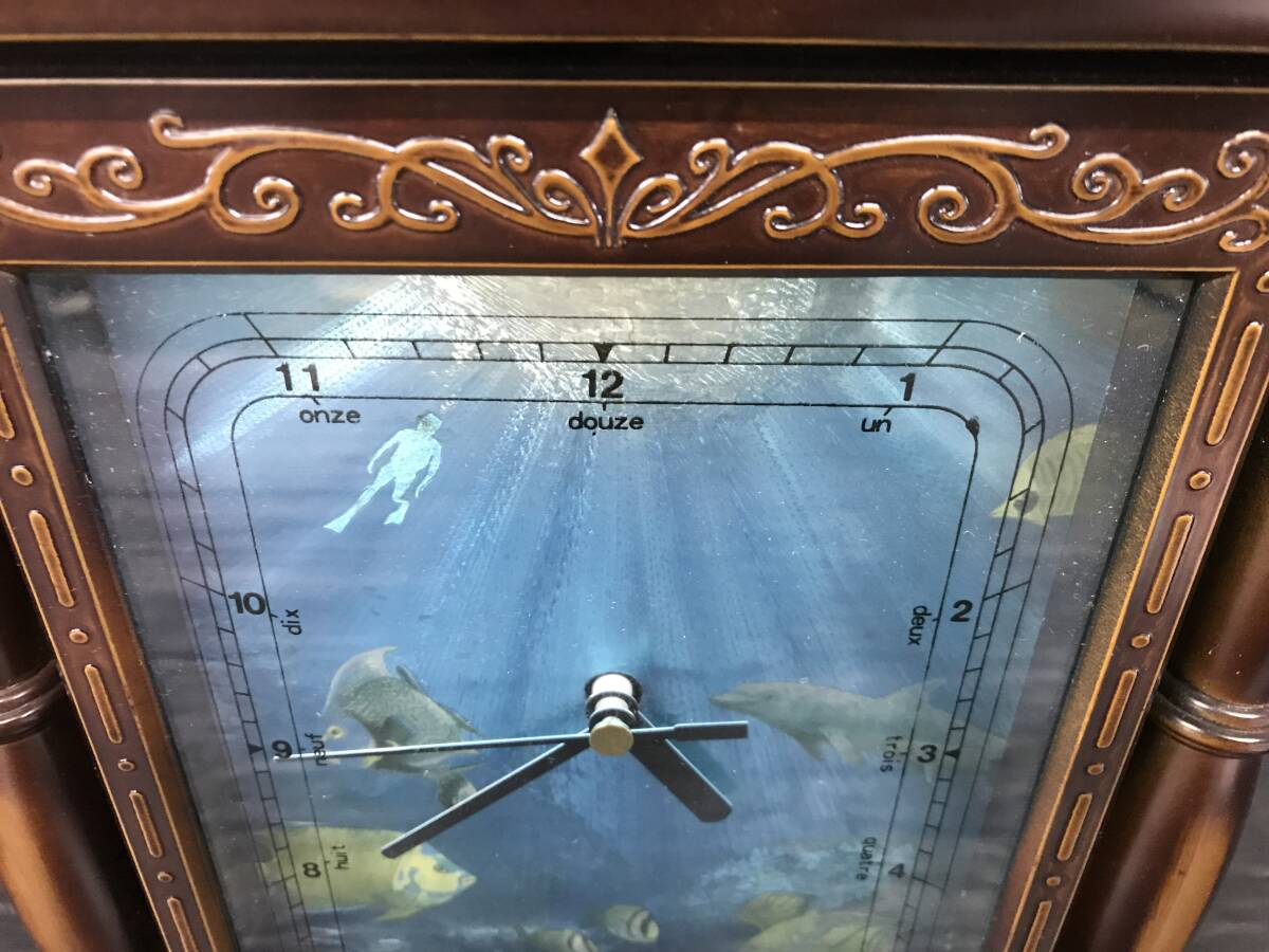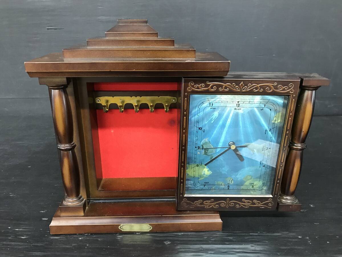 湘/時計型キーボックス/動作確認済み/置時計/アナログ/海中柄/木製/9.26-177HU