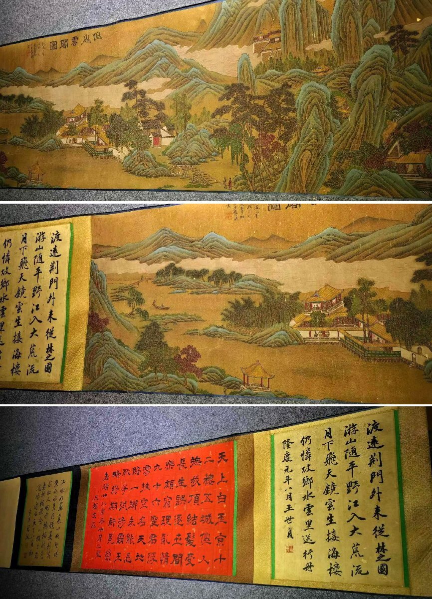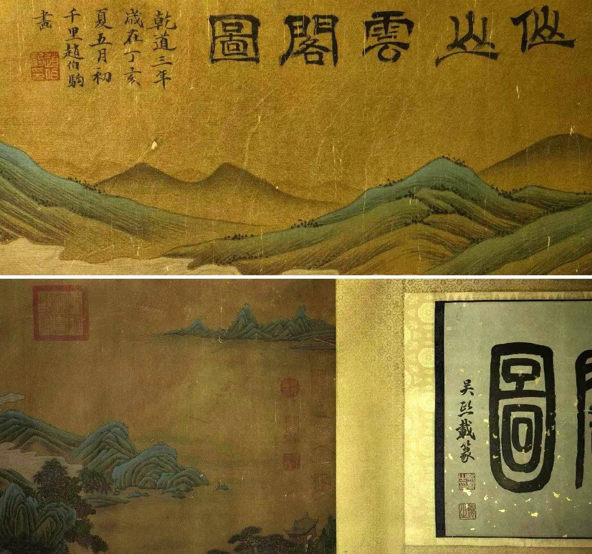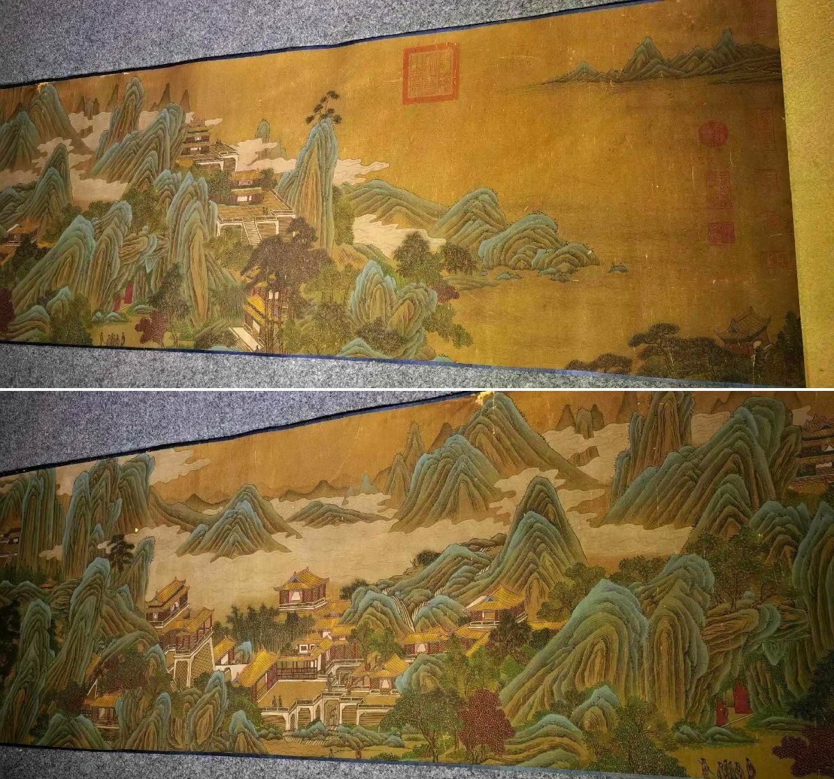 【安】中国宋時代画家「趙伯駒書」絹本「仙山雲閣図長巻」巻き物 中国画 墨寶妙品 中国書道 古美術 420 サイズ(約寸) |