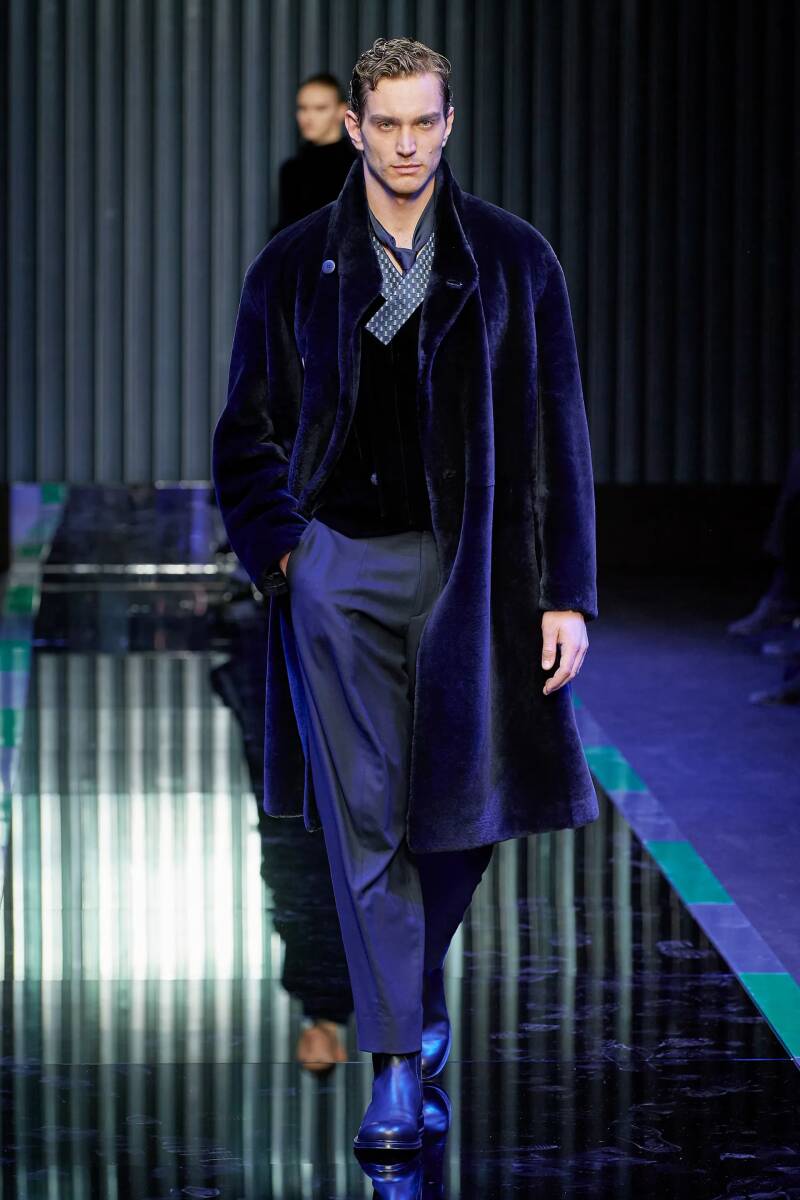 ジョルジオ定番の凹凸ハニカム生地で仕立てたイージーフィットのタックパンツ。生地素材に関してはさほど説明は要らないでしょう。ジョルジオが以前から定番で使用しているハニカム構造生地でお好きな方も多いと思います。引っ張れば引っ張るだけ伸縮するスーパーストレッチで肌触りも良く生地表情もあり発色も艶も良し。最高に楽ちんで高級感もバッチリです。今回のパンツは裏地が裾まである完全2重構造。これはおそらくは強風対策ではないかと思います。このハニカム生地は立体構造で見た目以上に保温性がありますが、ニット地のように若干風を通すところがあり、風の強いときは少し肌寒くなります。総裏地の2重構造で風を通さなくなり、体温を逃がしにくくすることで暖かさを確保しています。スタイルは深いタックでゆったり量感を取ったテーパードシルエット。掲載しましたランウェイ写真は今回出品のパンツの生地違いになります。ウエストがゴム伸縮するイージーフィットは伸縮性が高いうえにホールド性も高く、快適な履き心地を約束します。着用シーズンは秋冬と春。10月下旬から4月までがシーズンになるかと思います。フィッティングに関して、伸縮するウエスト構造で腰にフィットしてホールドする作りです。出品のイタリアサイズ54は38インチから40インチのお客様に快適にお履きいただけるサイズになります。