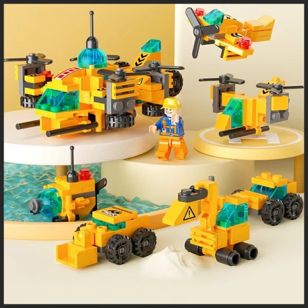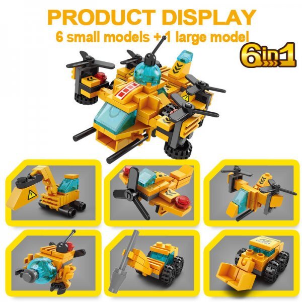 建築現場作業用ヘリコプターの変身ブロックの組み立てセットです。