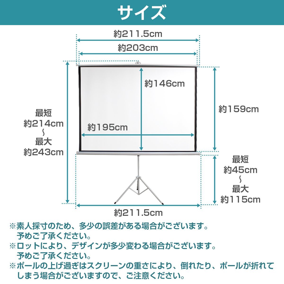 スクリーン サイズ(約):横幅195×縦幅146cm(4:3)