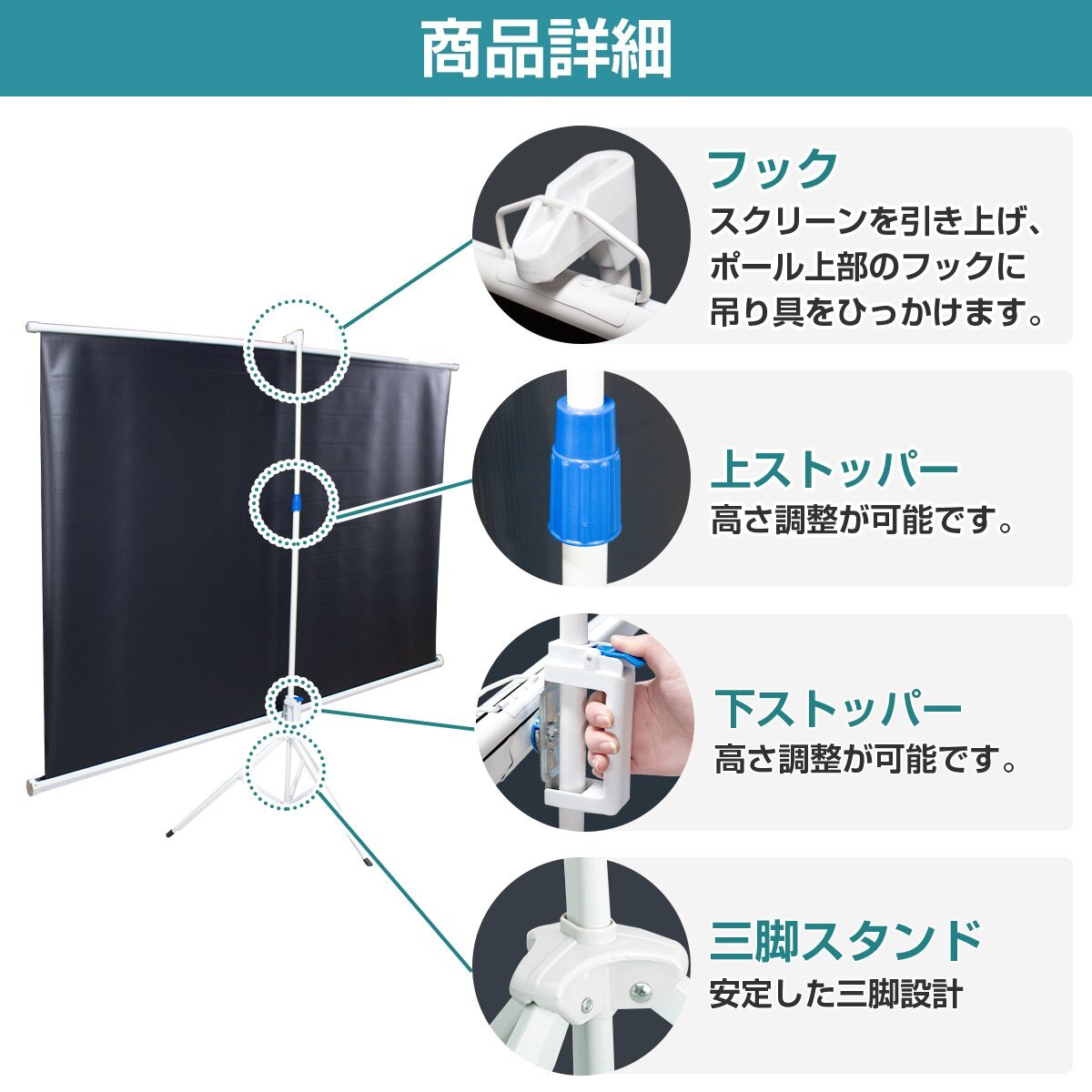 商 品 説 明100インチ相当!自立型のスクリーンです。