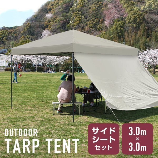 ワイドなサイズ300×300cmのワンタッチタープテントです。 組み立てはワンタッチで簡単! 大人2人で持ち上げてゆっくり広げるだけ! フレームは強度で耐久性のあるスチール製を採用! アルミ製より少し重いですが、強度で安定性があります!! 急な雨が降っても安心の撥水加工が施されており、大人数のバーベキューやスポーツ観戦、アウトドア、休憩所にぴったり。 持ち運びに便利な専用収納バック付き! 【商品仕様】 カラー:サンドベージュ 商品サイズ: ●タープテント 使用時(約):幅300×奥行300×高さ171~260cm 収納時(約):幅119×奥行21×高さ21cm ●サイドシート (約)200×300cm 材質:スチール、ポリエステル 重量(約):11kg 【商品内容】 タープテント本体 ロープ ×4 ペグ ×8 サイドシート×1 専用収納ケース ※こちらの商品はタープテント&サイドシートのセット商品です。 |