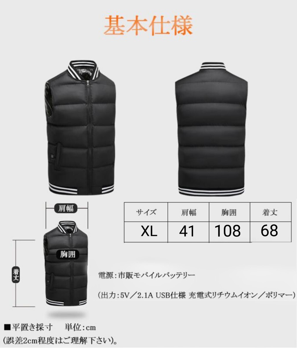 セット内容:電熱ベストx1、日本語の取扱説明書x1