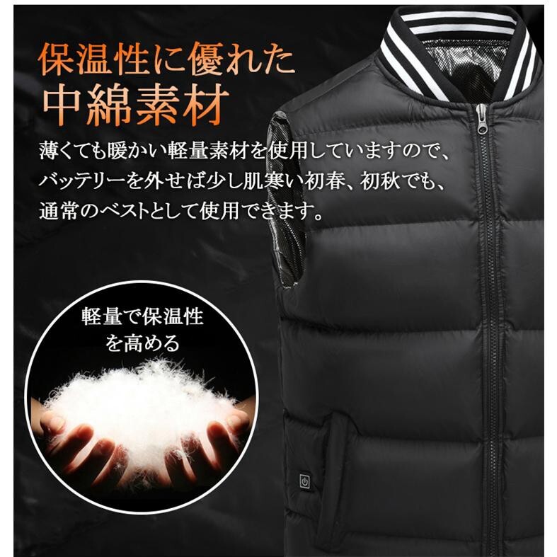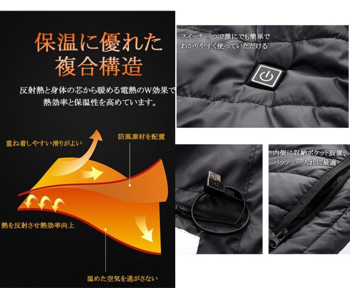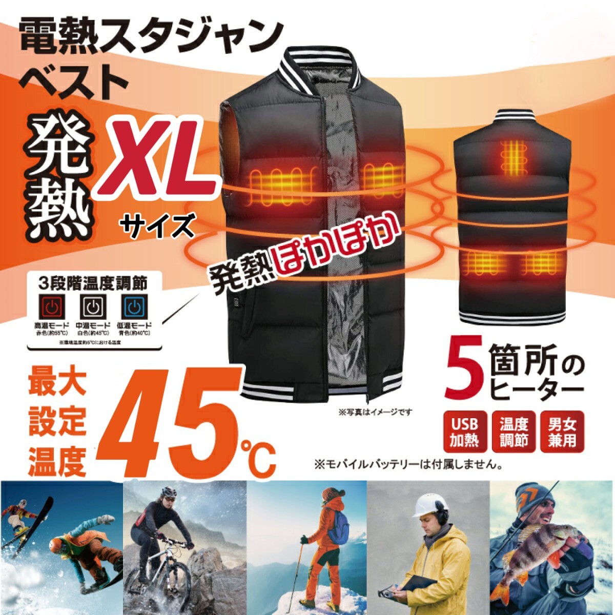 電熱 スタジャン あったかベスト 発熱 USB 加熱 発熱 温度調節 温かい 中綿 ヒーター アウトドア レジャー キャンプ 釣り 散歩 バイク スキー 防寒 男女兼用 ユニセックス
