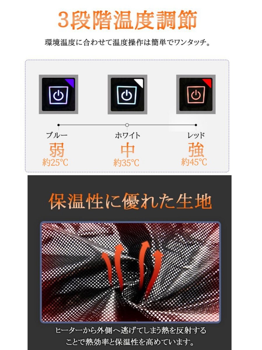 ヒートパネル配置:5か所 ヒートシステム:3段階温度設定