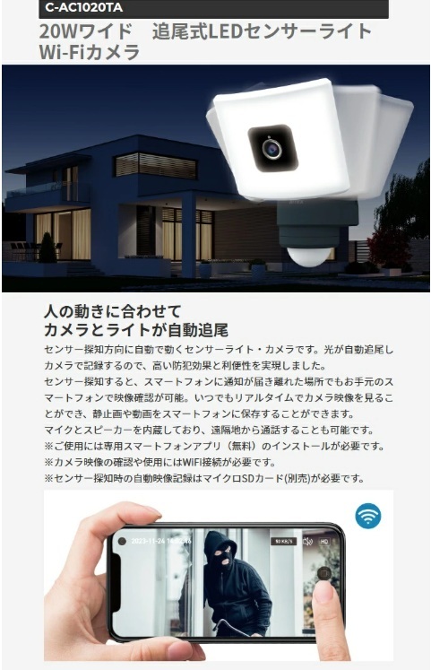 20W 追尾LEDセンサーライトカメラ C-AC1020TA ライテックス