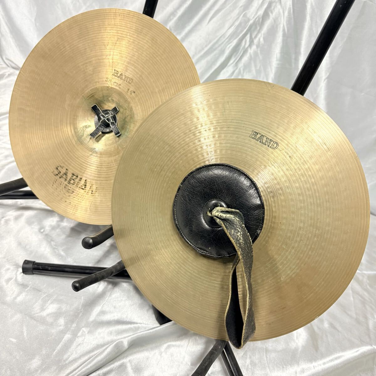SABIAN Band Cymbals 14インチ ペア ヴィンテージ 1980年代 ハンドストラップ付 1121g/1094g 割れヒビなし
