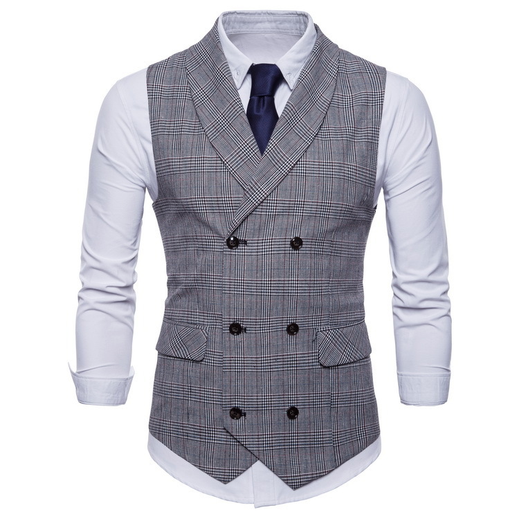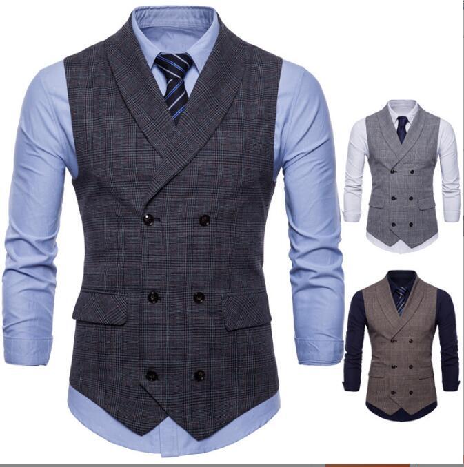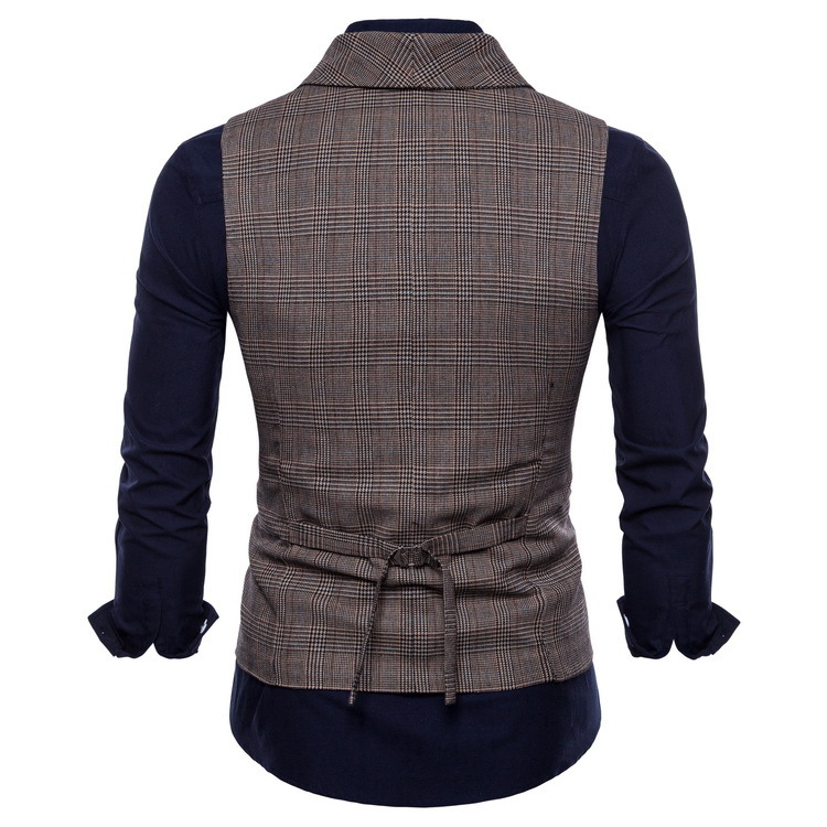 新品人気推薦メンズ ビジネスベスト チェック柄 スーツベスト 紳士 シンプル カジュアル チョッキ ジレベストコーヒー M~4XL