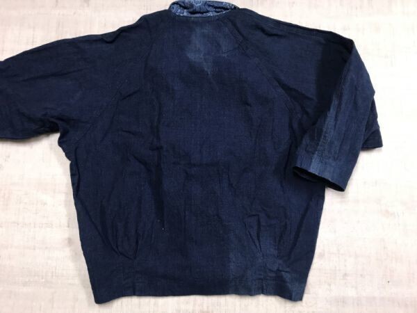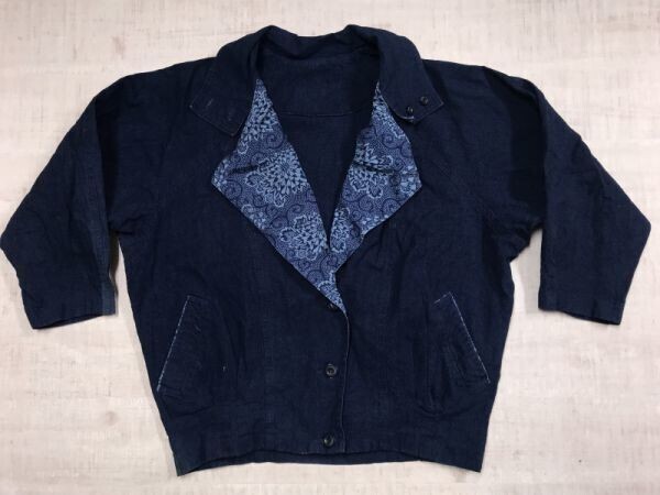 昭和レトロ オールド インディゴ 藍染め オリエンタル 花柄 総柄 2wayボタン ダブル ジャケット レディース 日本製 紺 です。