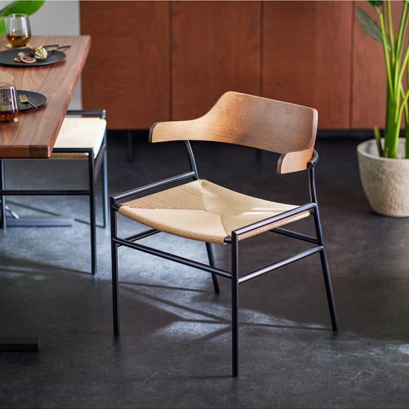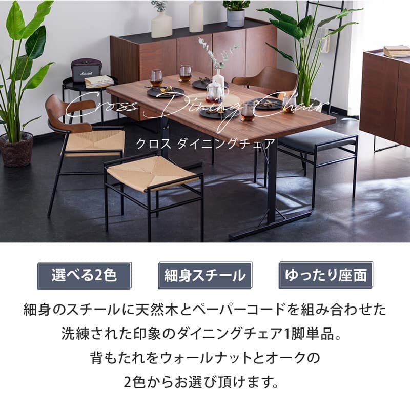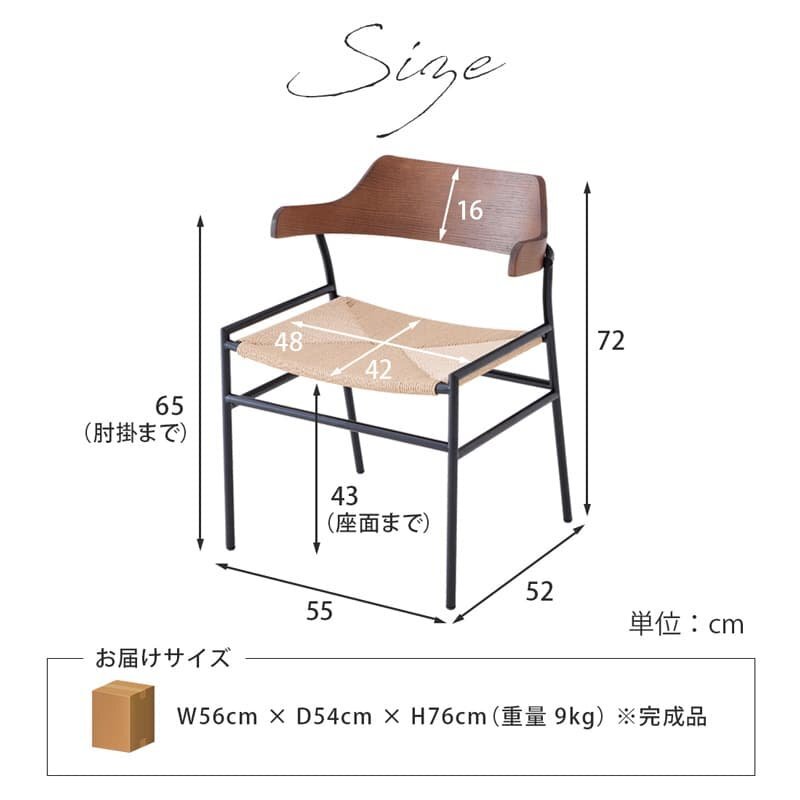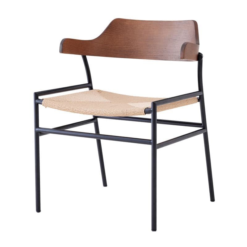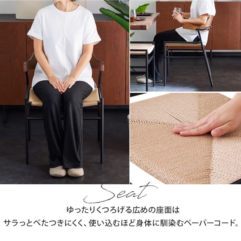 ダイニングチェア 1脚 完成品 肘付き チェア アイアン 天然木 クロス ウォールナット/ペーパーコード
