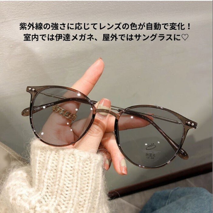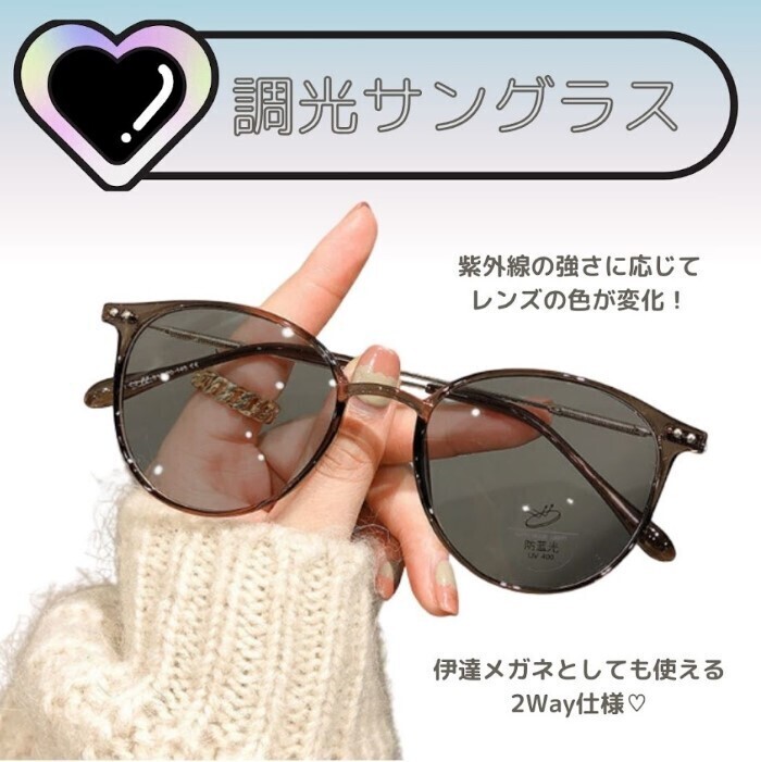 紫外線に反応してレンズの濃さが変わるので、伊達メガネとしても使える調光サングラスです!!