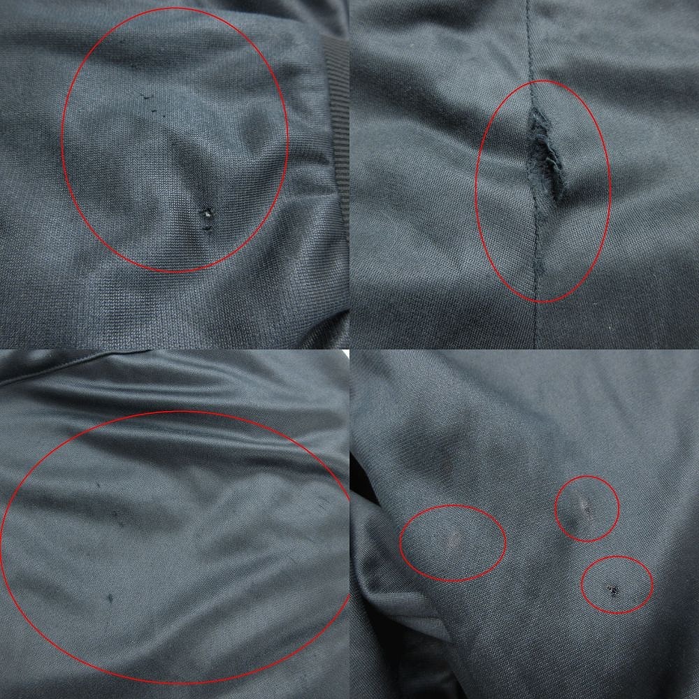 | 【・プリントにヒビ、ファスナー周り素材剥げ、袖下部に傷・パンツヒップ部分に破れやドローコード周りに破れ※使用感の他、上記のようなダメージがある中古品です。掲載写真や記載内容をご確認いただき、ご理解の上ご購入ください。中古品を扱っているため、元の商品のデザインや形状が全て把握できかねますので、予めご了承下さい。】 | |