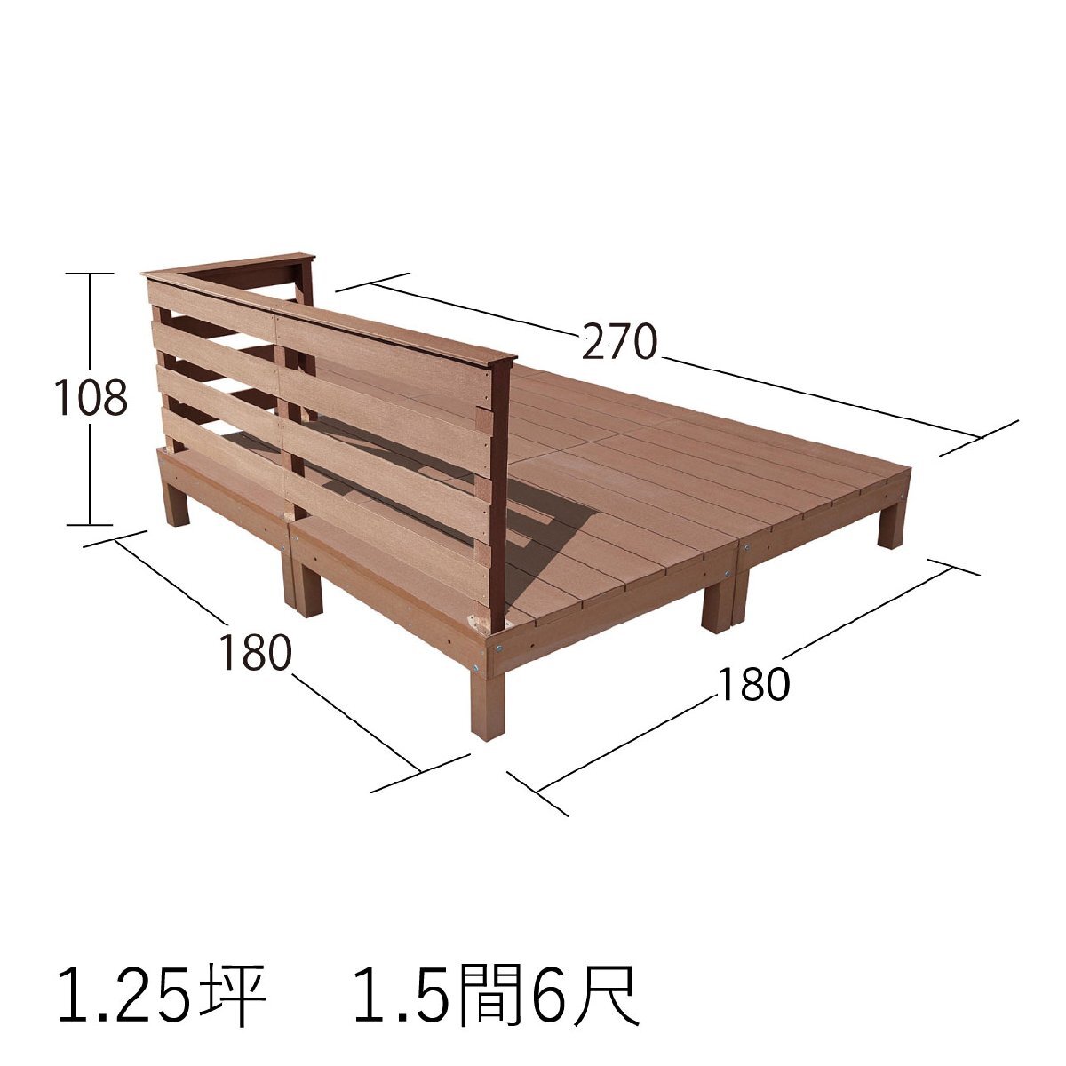 igarden アイウッドデッキ 8点セット 1.25坪 ナチュラル 樹脂製 手摺り付き 横柵ハイタイプフェンス ボーダー テラス バルコニー -5d3hbd