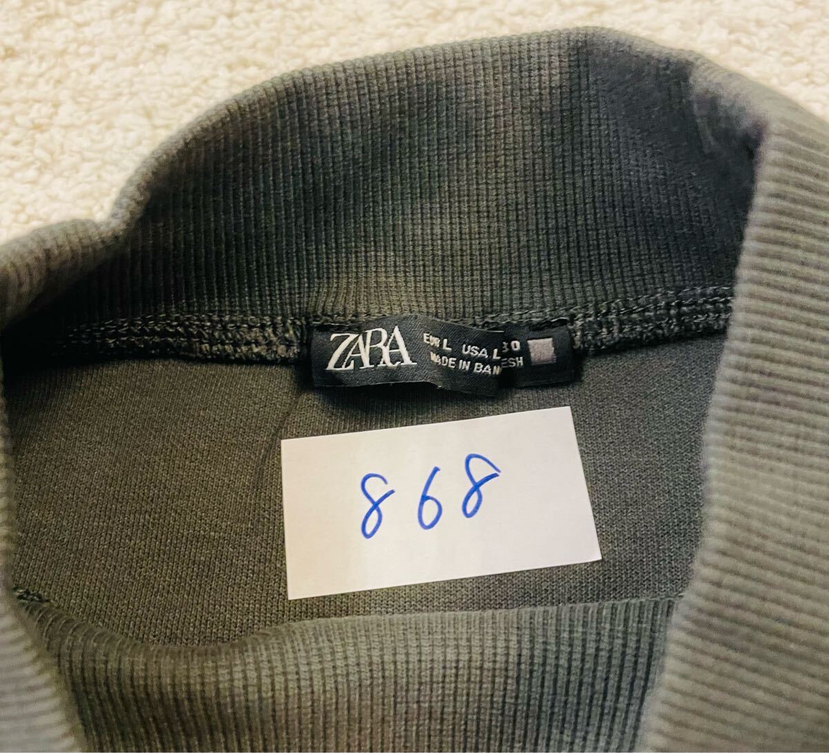 №868 ZARAオリーブチャコール半袖ハイネックカットソーL