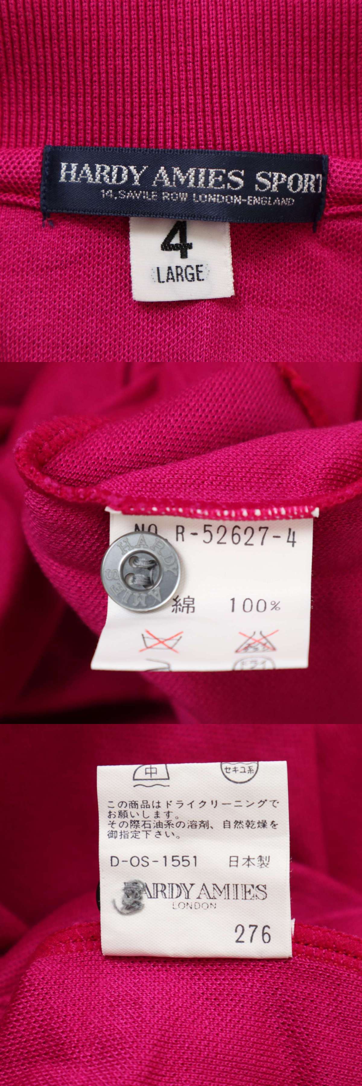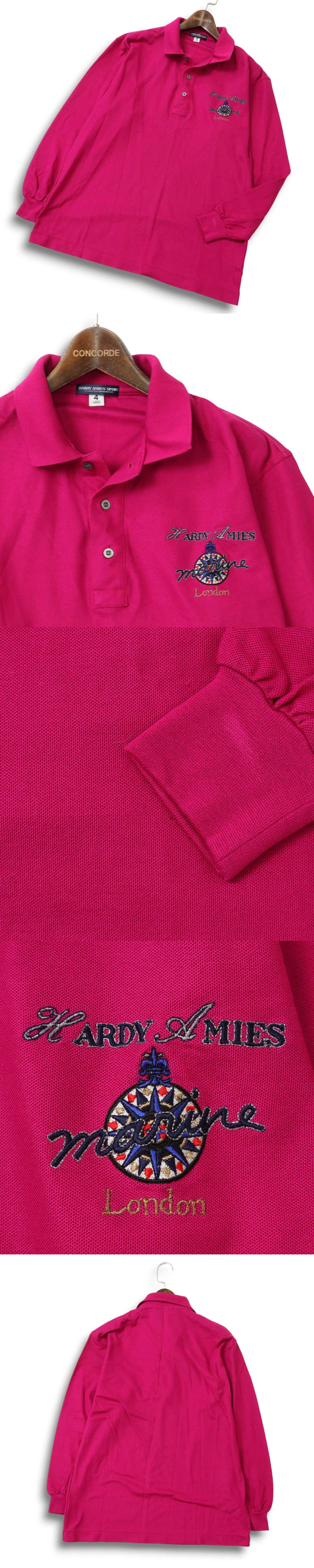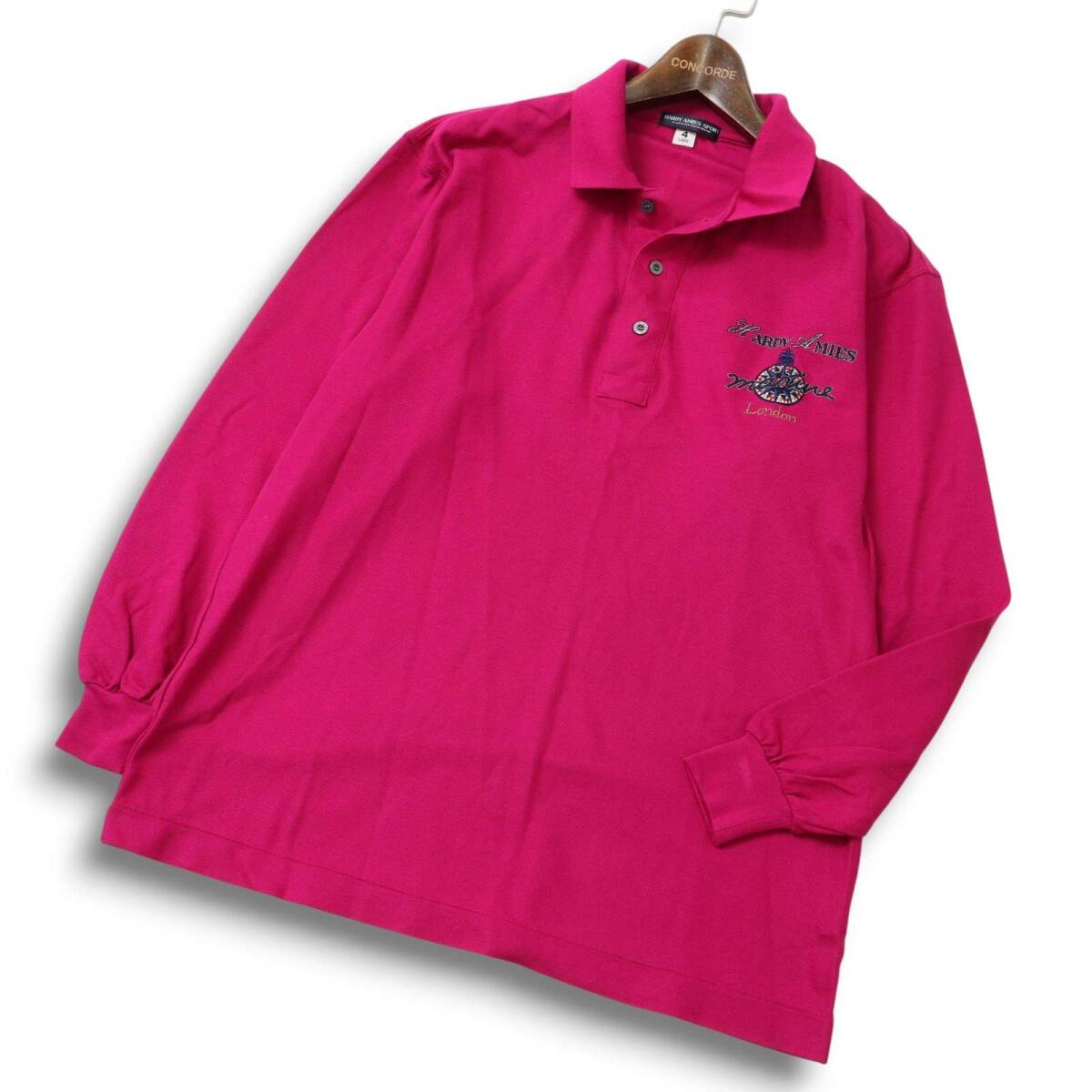HARDY AMIES SPORT ハーディエイミス 通年 ロゴ刺繍★ 長袖 ポロシャツ Sz.4 メンズ 日本製
