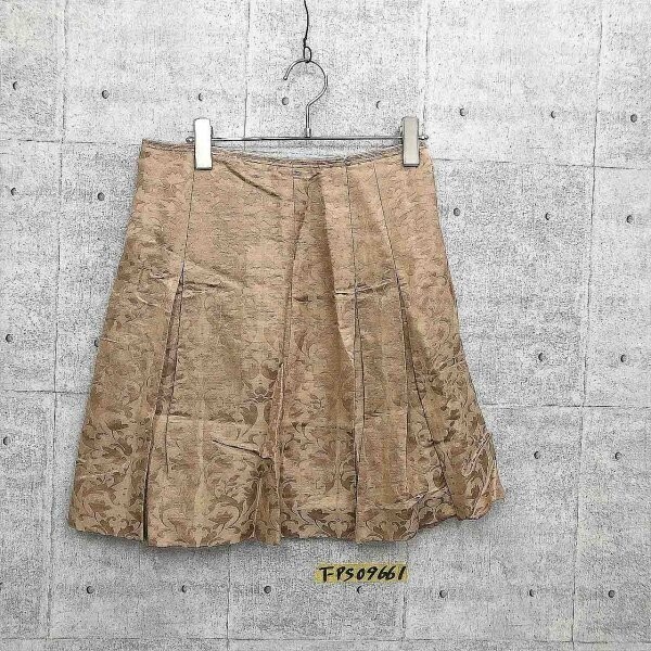 MACPHEE マカフィー レディース 日本製 プリーツ 柄入り スカート 36 ベージュ キュプラ麻 です。