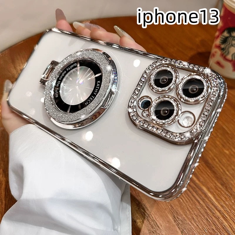 iphone13ケース カーバー スタンド付き 透明 お洒落 韓国 軽量 ケース 耐衝撃 高品質 シルバー