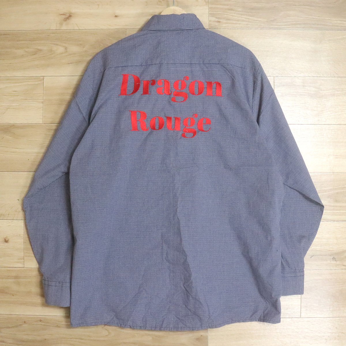N2T/D10.28-1 アメリカ古着 GK ワークシャツ チェック柄 L メンズ ワッペン 文字 バック刺繍 Dragon Rouge