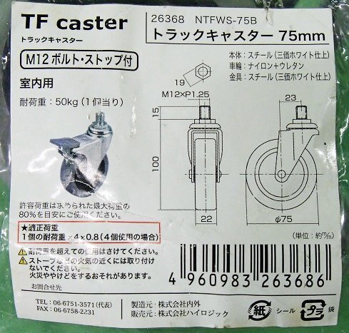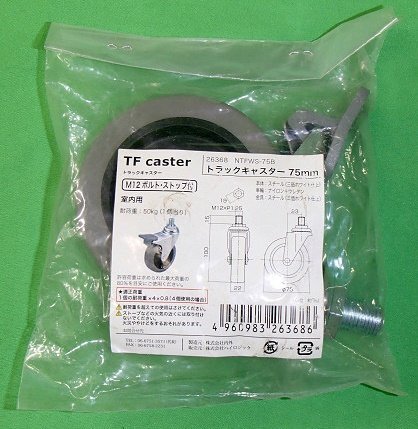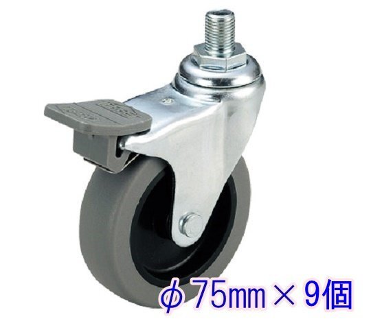 未使用 9個セット トラックキャスター M12 ボルト・ストップ付き 75mm 26368 NTFWS-75B 許容荷重50kg 業者向け 車輪 アウトレット