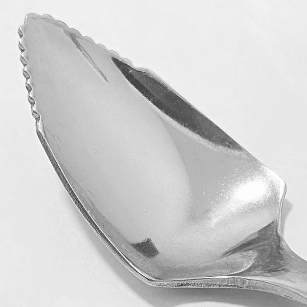グレープフルーツ等の柑橘系の果肉を皮からむきやすいよう、スプーン先端が鋸葉の形になっています。