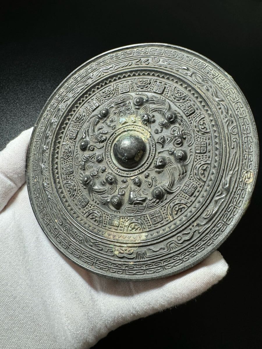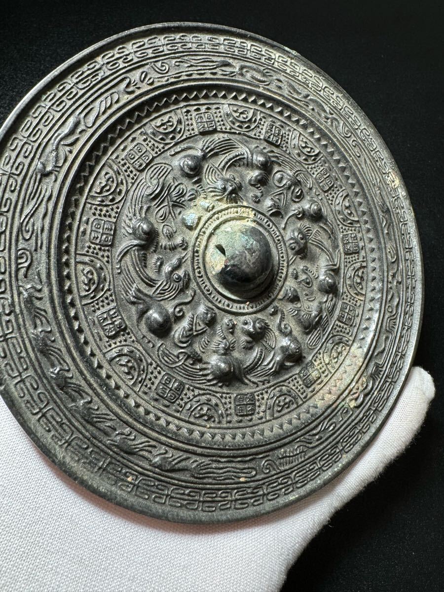 銅鏡 時代物 漢~唐代 銅製の彫刻 中国古美術 極細工 工芸品 美術品置物 詳細不明 古鏡