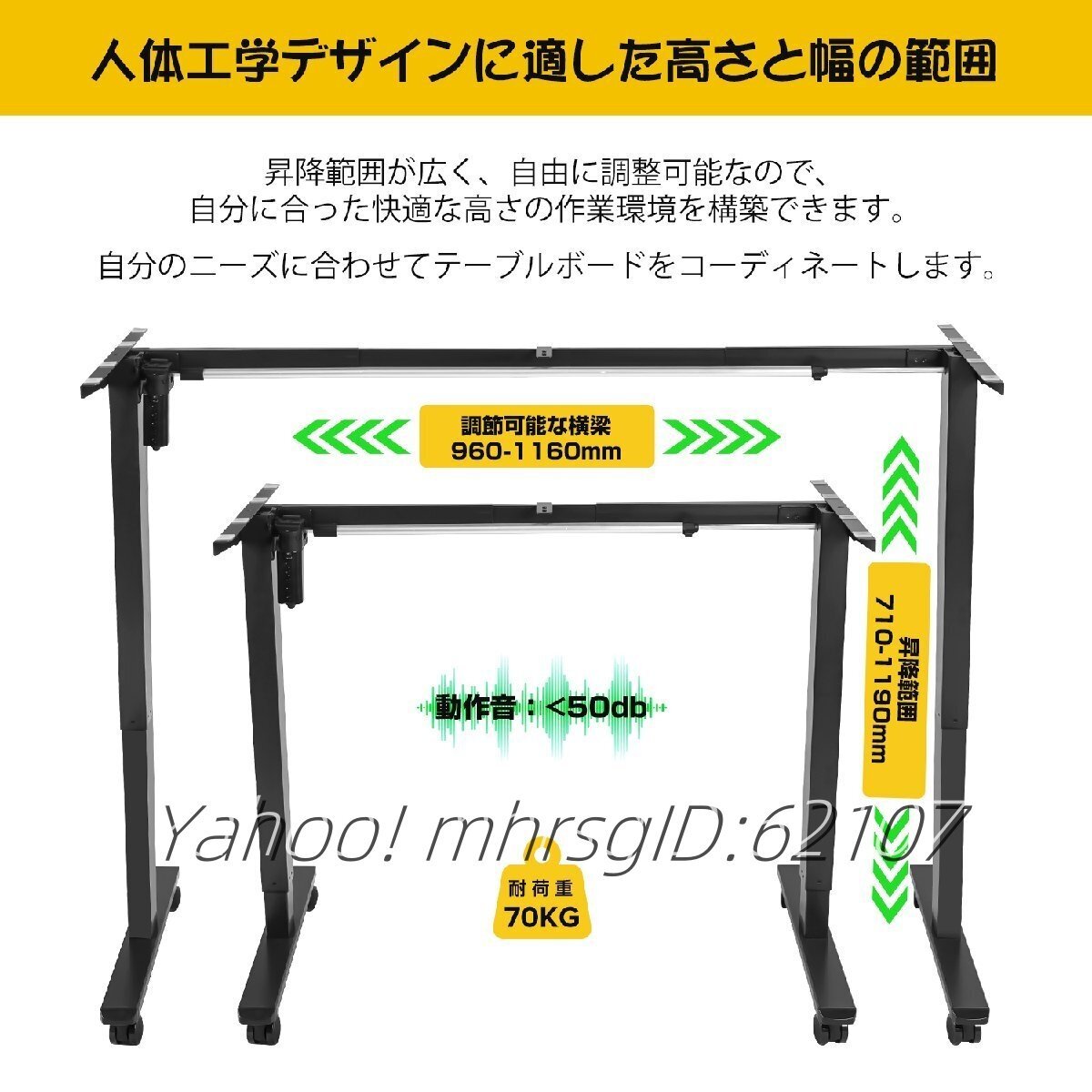 昇降デスク スタンディングデスク 電動昇降式デスク 高さ調節71cm-119cm静音収納フック付き キャスター付き オフィスデスク ブラック(644)