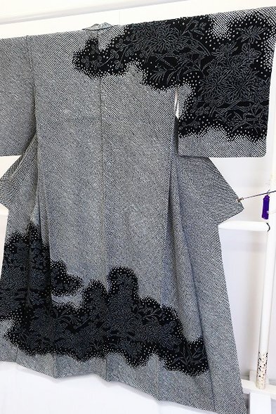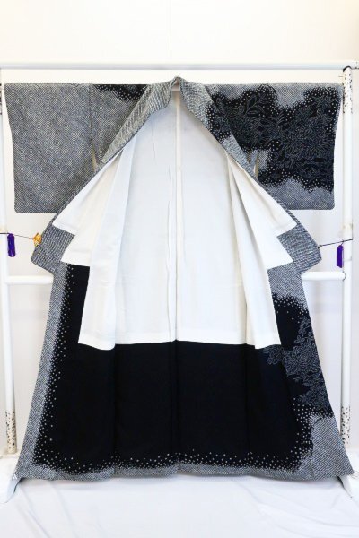 〔着物の色〕 黒 〔八掛の色〕 共生地(柄入り) 〔着物の素材〕 正絹 |